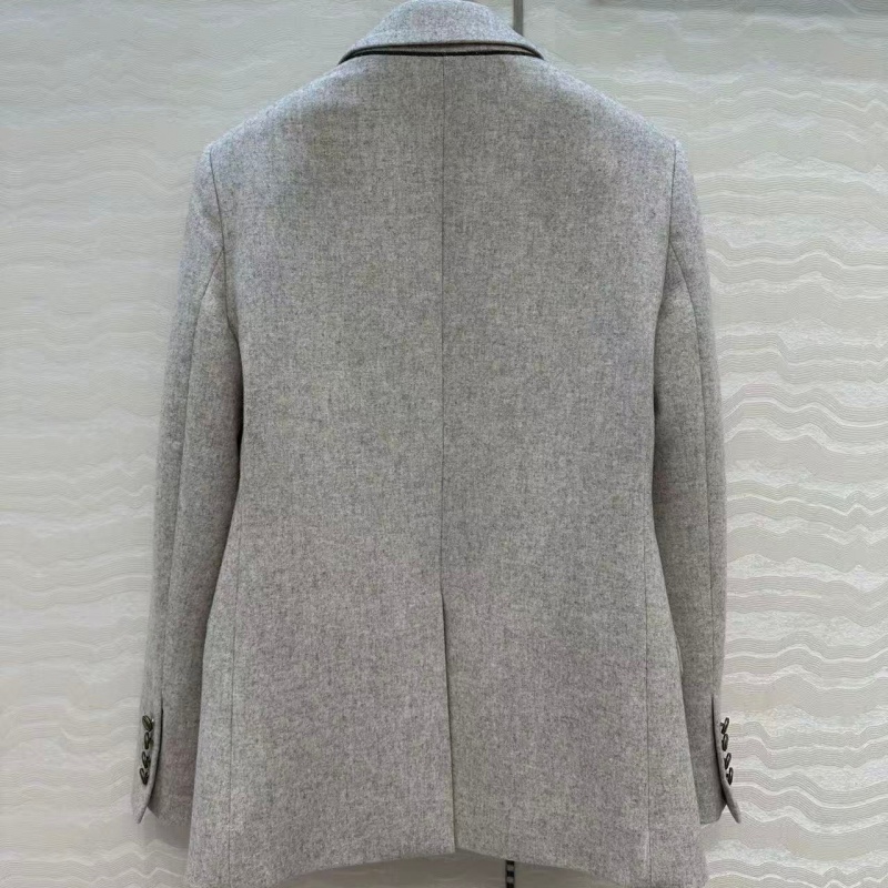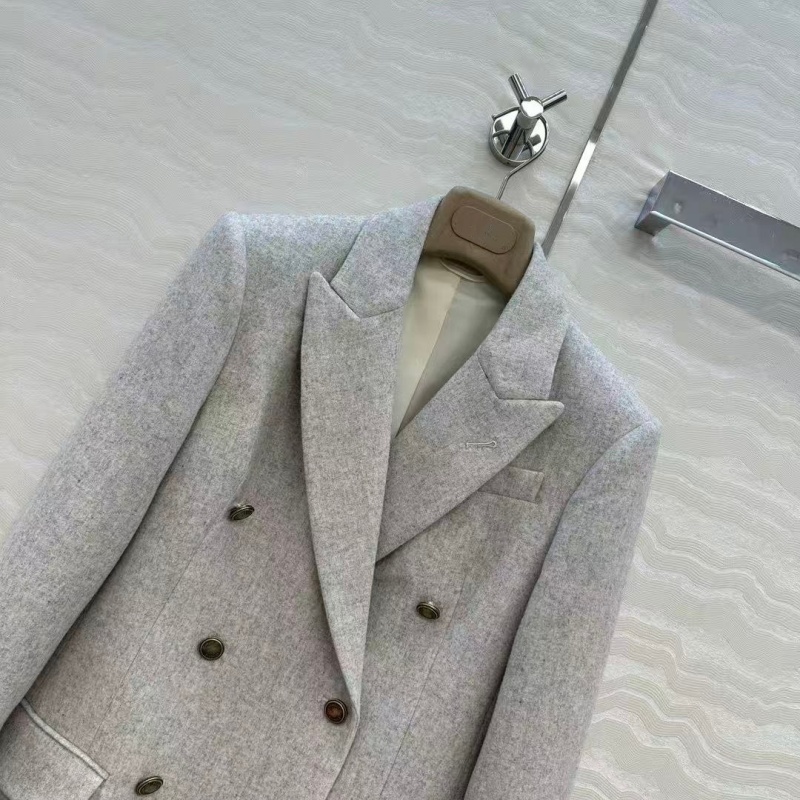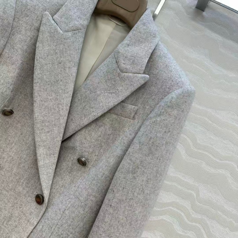 这款商品是一款全新的女装外套,设计独具特色。它是一件定制的中长款西装外套,采用复古做旧风格,时尚而经典。面料选用优质羊绒与羊毛混纺材质,质地细腻舒适且保暖性强。同时采用双排扣设计,使整体更具高雅韵味。其腰部线条流畅,修身效果突出,既展现了女性的曲线美又显得宽松舒适。这款外套不仅适合日常穿着,也适合商务场合穿着,展现出女性的优雅气质和自信魅力。