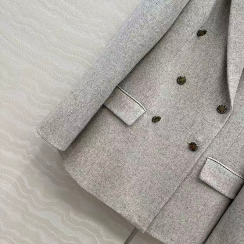 CHINAL秋装ROW意大利进口羊毛静奢风后叠叉中长款丝毛西装外套女