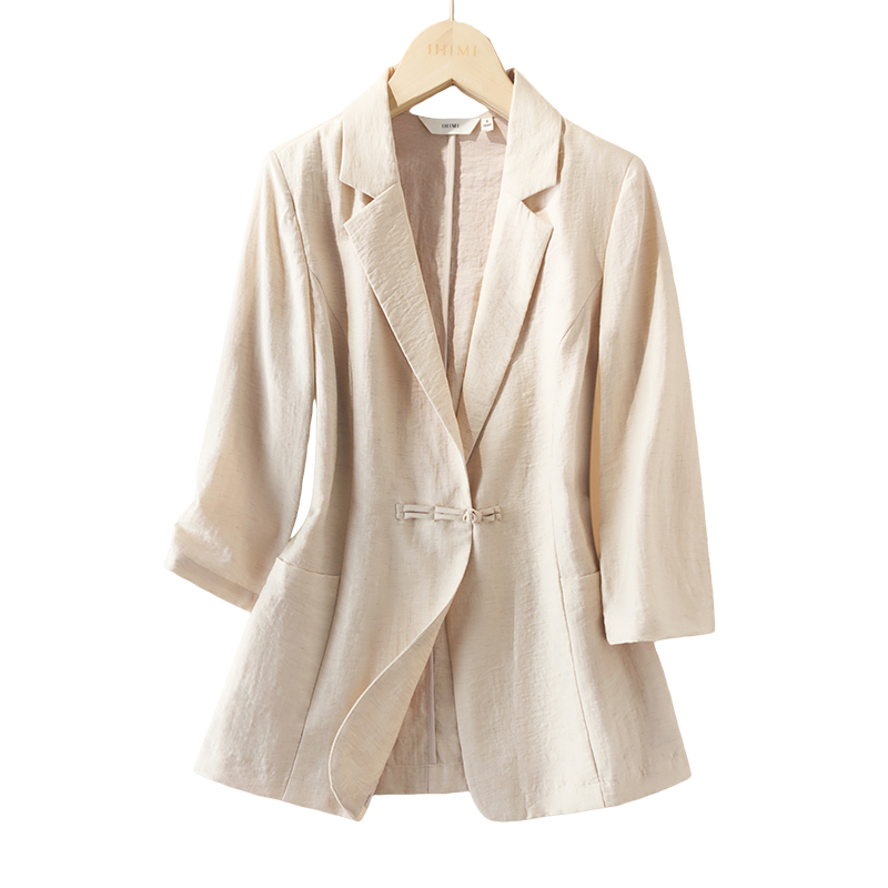 淘宝IHIMI海谧亚麻混纺西装外套女2025春秋季新款修身显瘦短款小西服