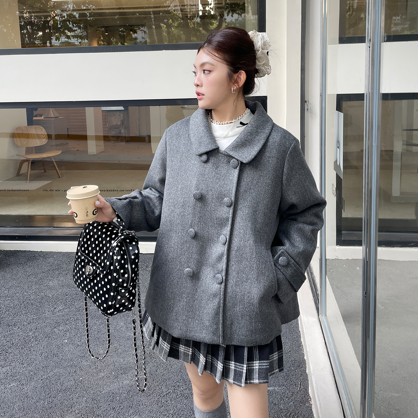 淘宝小草宽松定制冬季加厚毛呢外套大码女装胖mm深冬chic韩系西装上衣