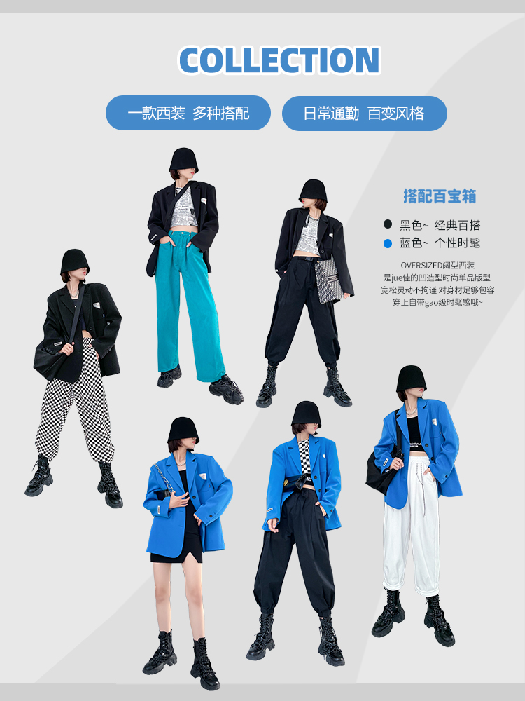 淘KOGIRL韩国东大门oversize宽肩时髦条纹廓形气质休闲西装外套女春