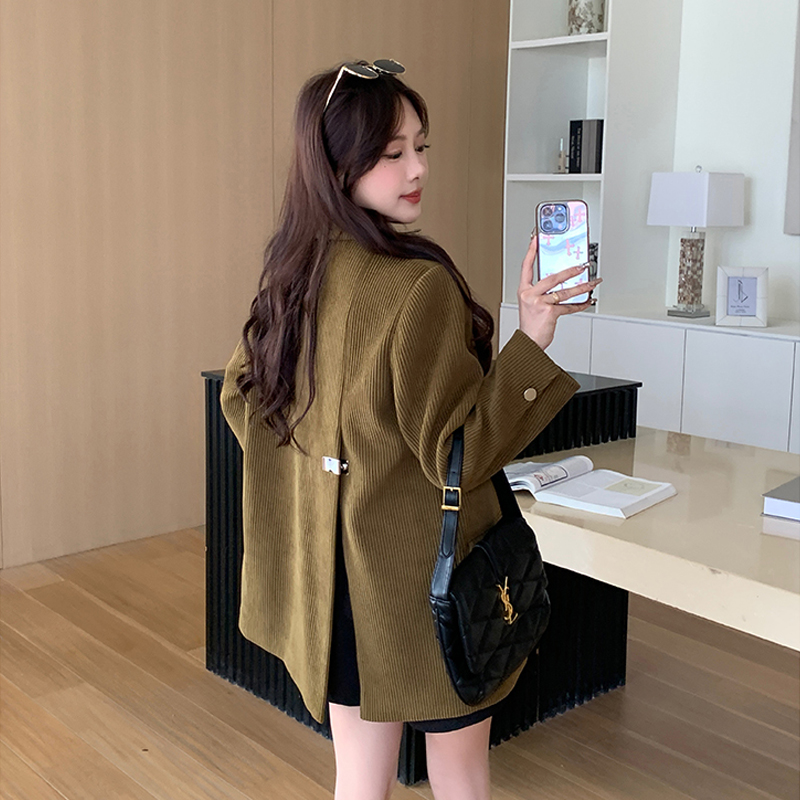 美拉德夹棉灯芯绒西装外套女冬季大码胖妹妹显瘦高级感中长款大衣