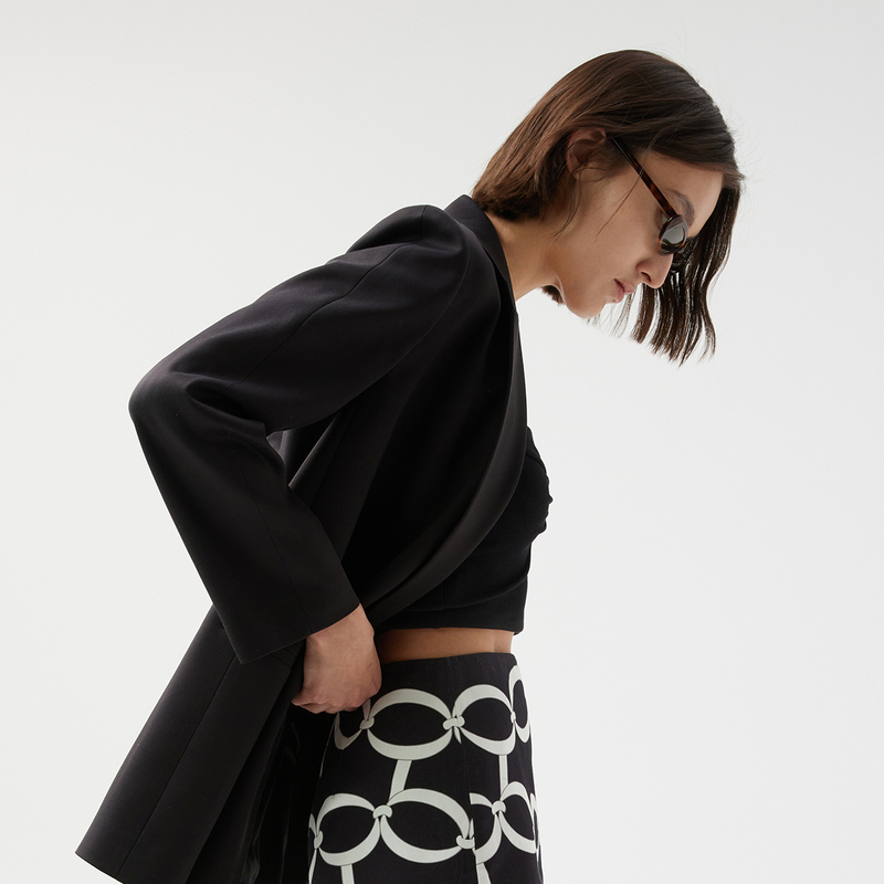 【盈动绽放】珂莱蒂尔2025春季新款黑色醋酸修身单排扣西装外套女