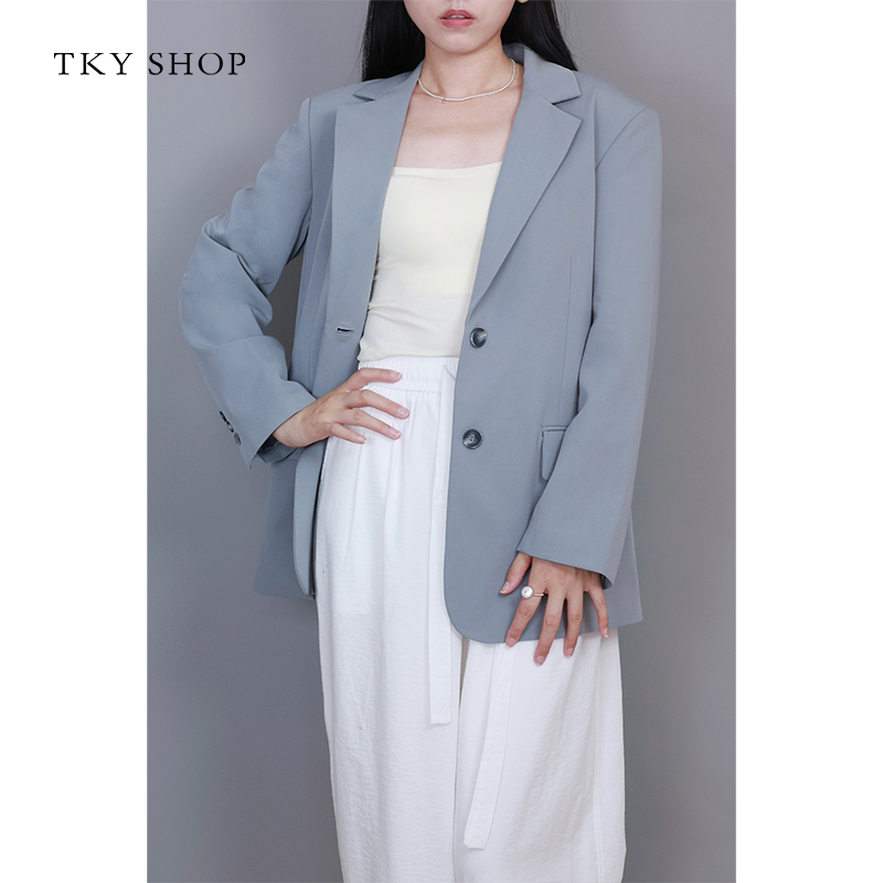 淘韩国chic秋季新款法式高级感宽松休闲单排扣双口袋长袖西装外套女
