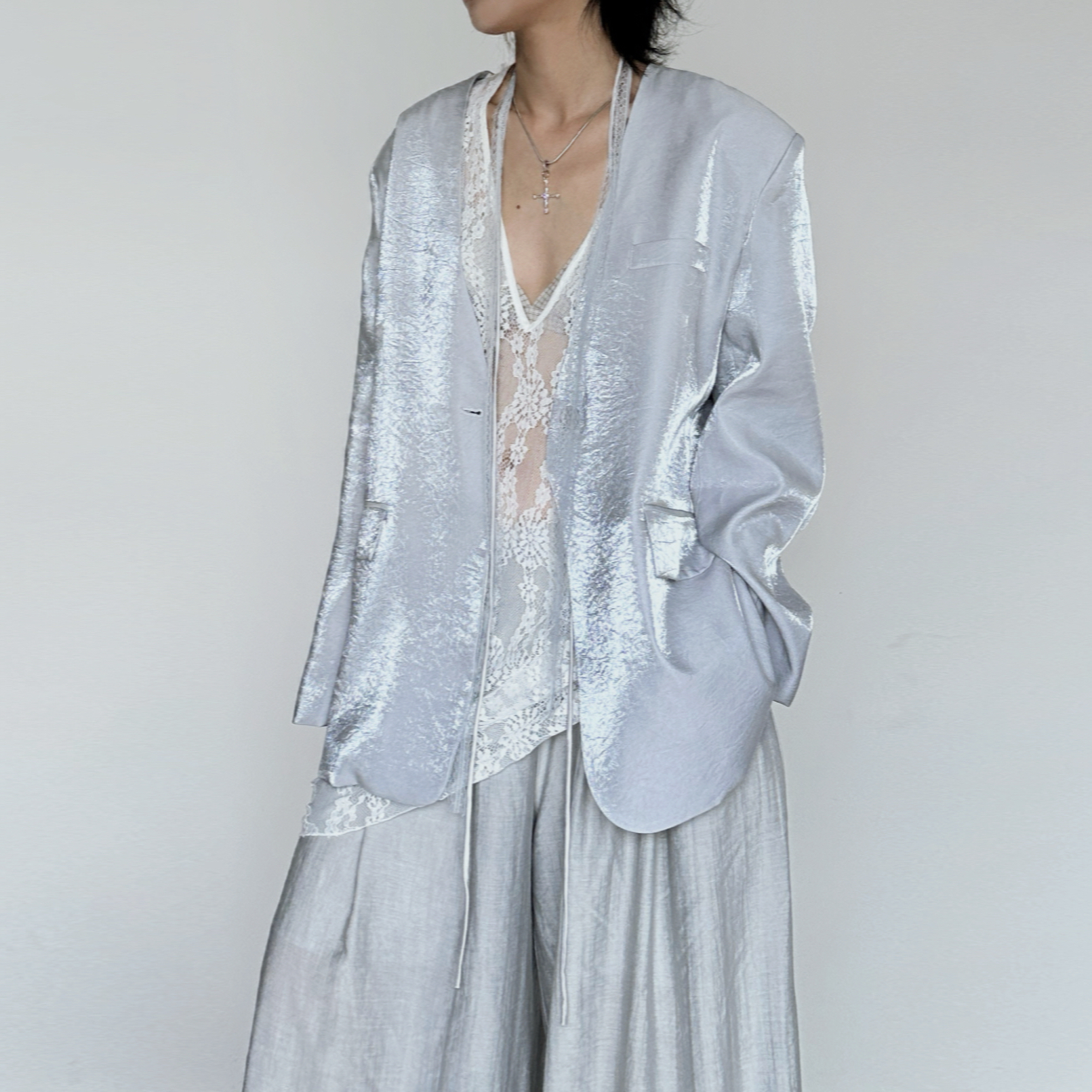 LYNEE 100进口绵羊毛简约戗驳领宽松西装外套女通勤感气质西服