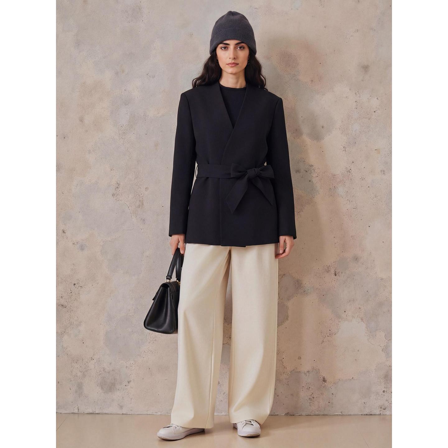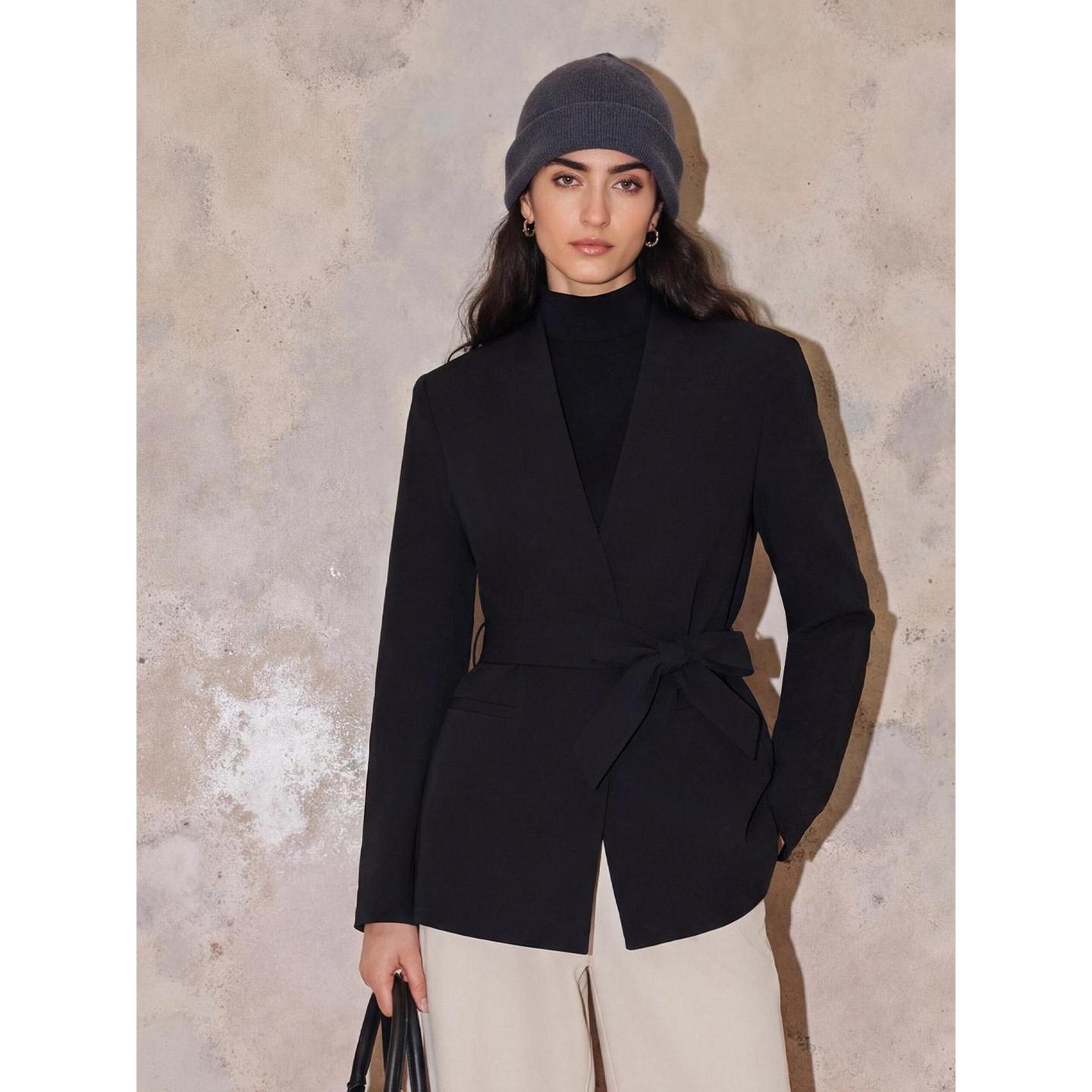 天猫Basic House/百家好黑色V领西装外套女士冬季高级感系带收腰西服