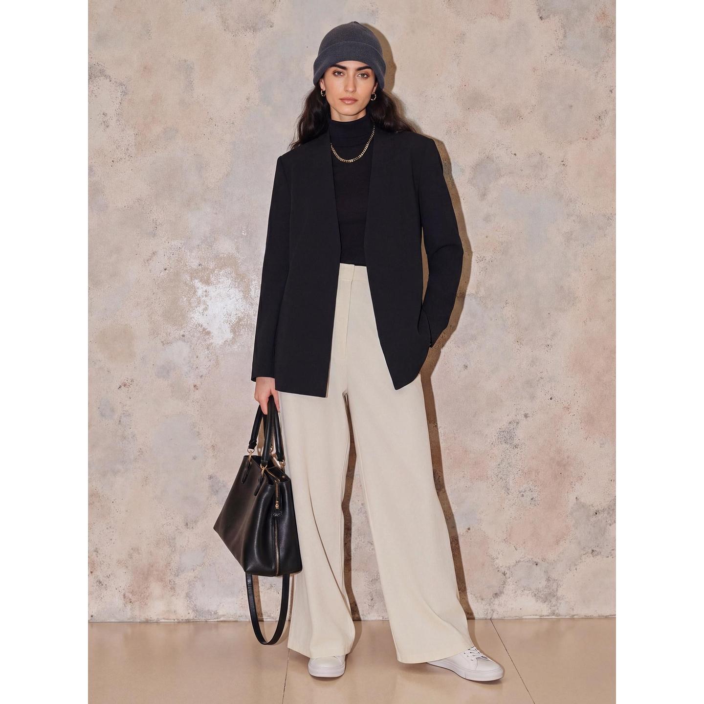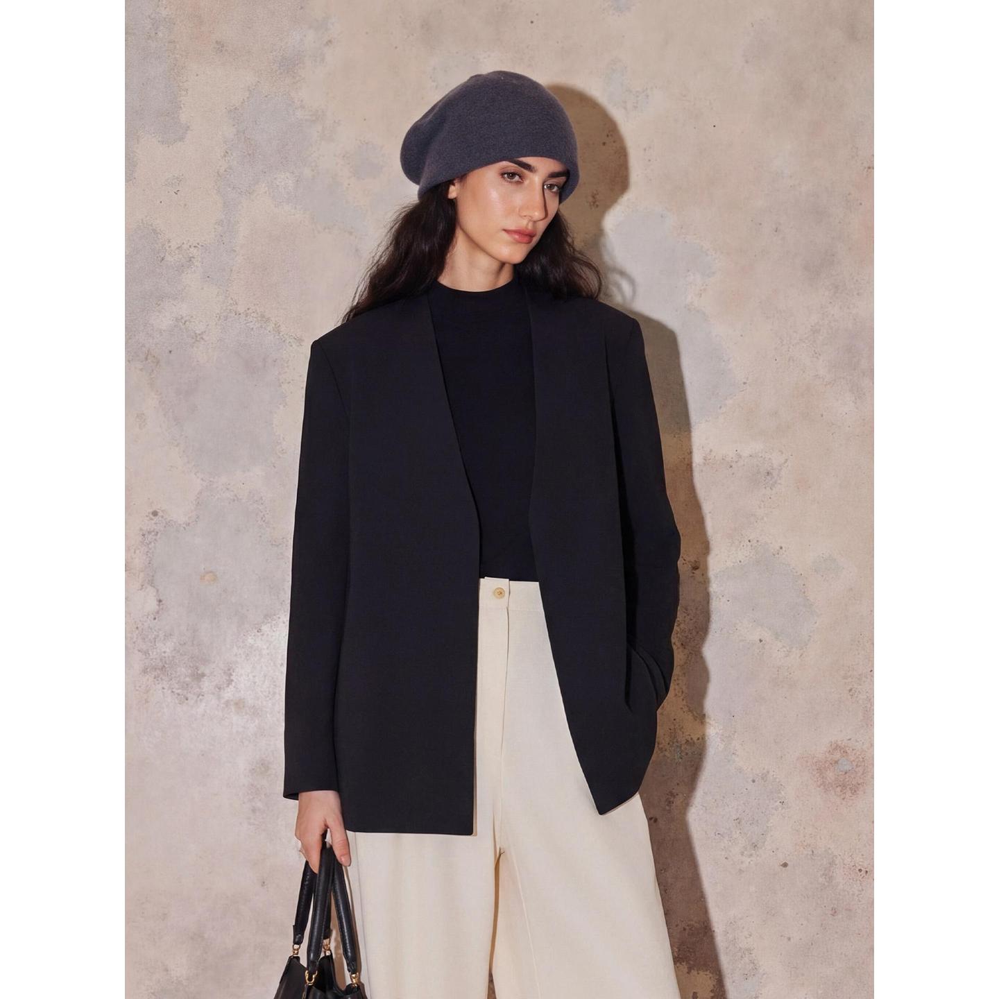 Basic House/百家好黑色V领西装外套女士冬季高级感气质羊毛西服