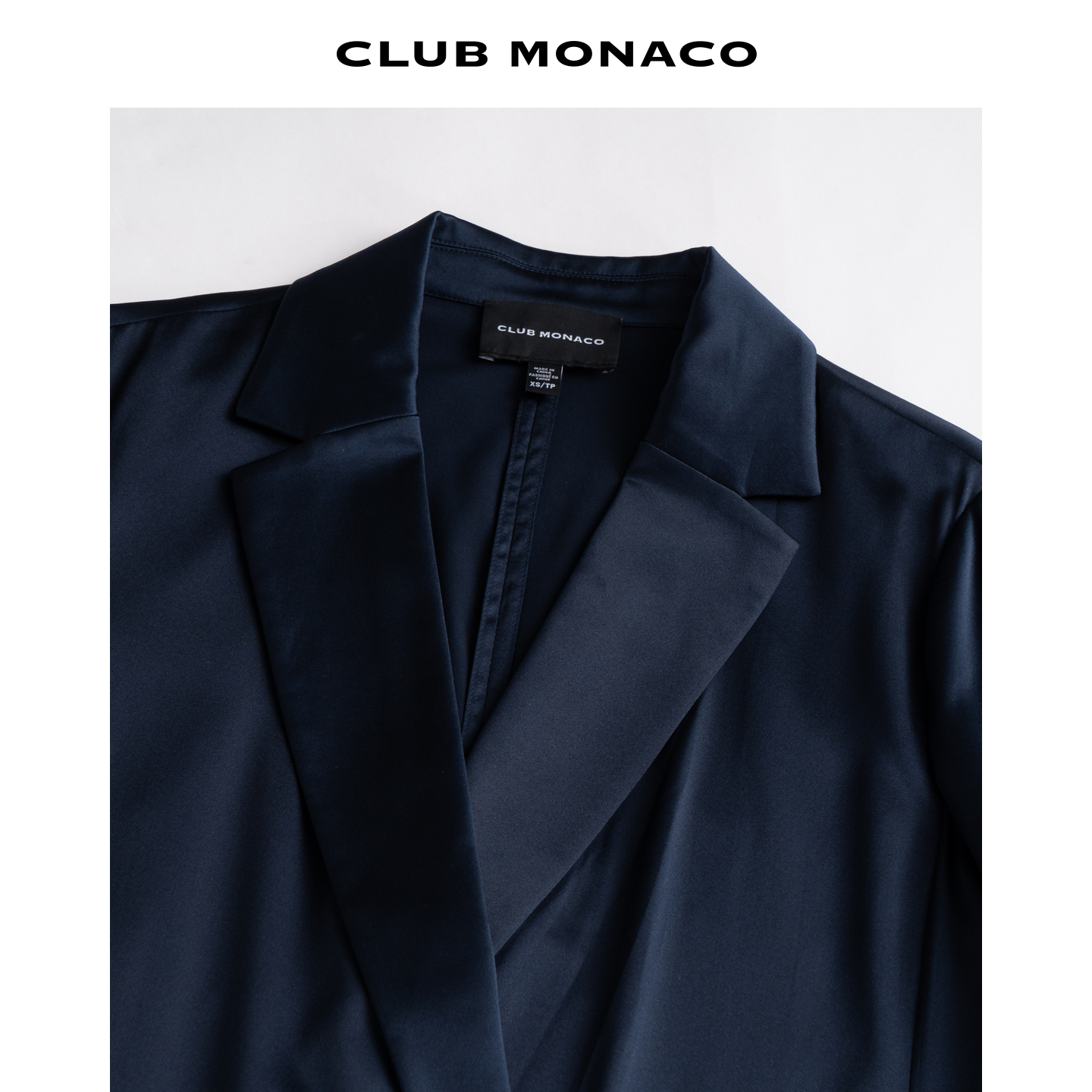 天猫CLUB MONACO女士秋冬通勤时尚含桑蚕丝上衣翻领双排扣西装外套