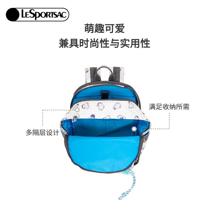 天猫LeSportsac乐播诗新款小企鹅和水獭系列萌趣满印隔层电脑包双肩包