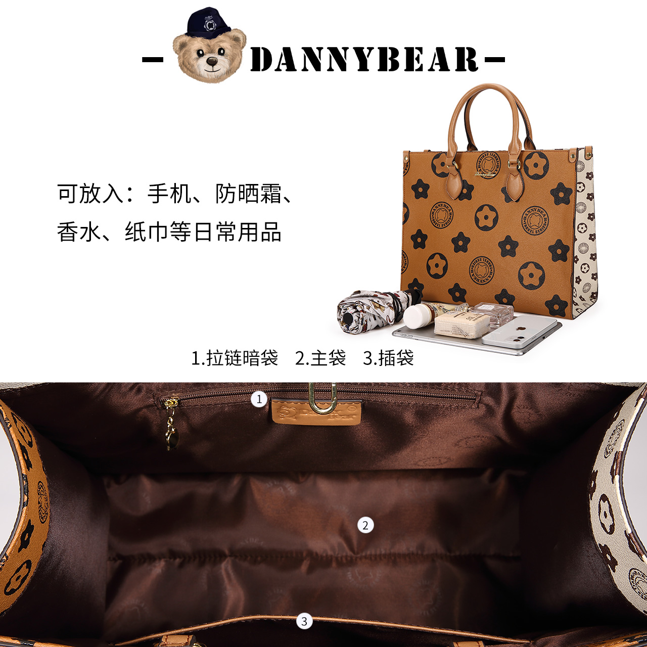 天猫丹尼熊单肩托特包大容量女士通勤时尚格子电脑包子母包DKB1826033