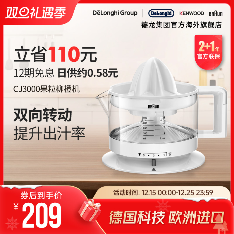 天猫Braun/博朗 CJ3000 榨橙汁机橙子电动小型家用柳橙汁渣汁分离器