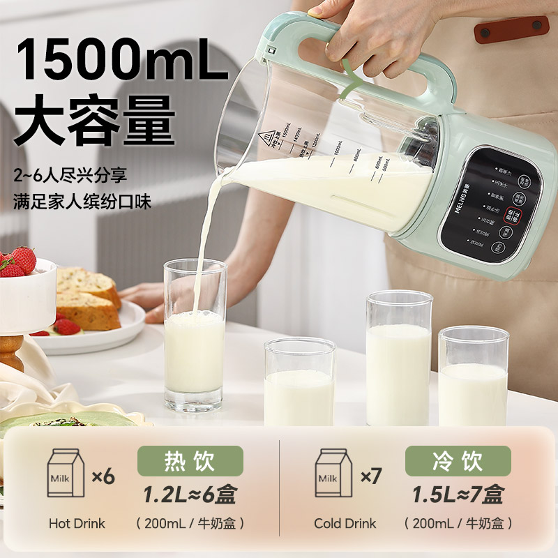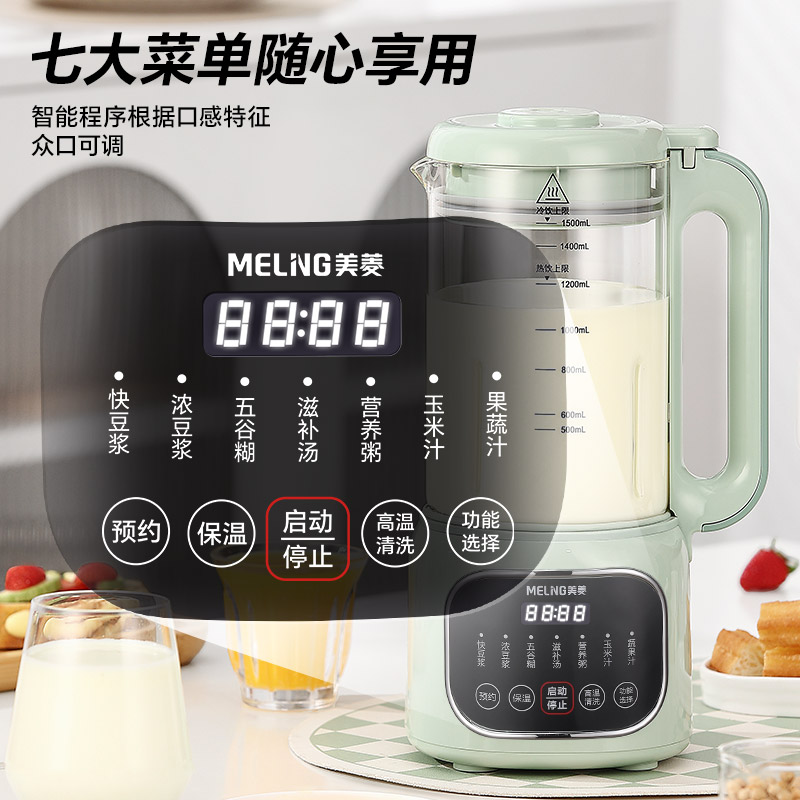 天猫美菱破壁机小型豆浆机家用全自动无渣免洗榨汁机轻音静辅食机新款