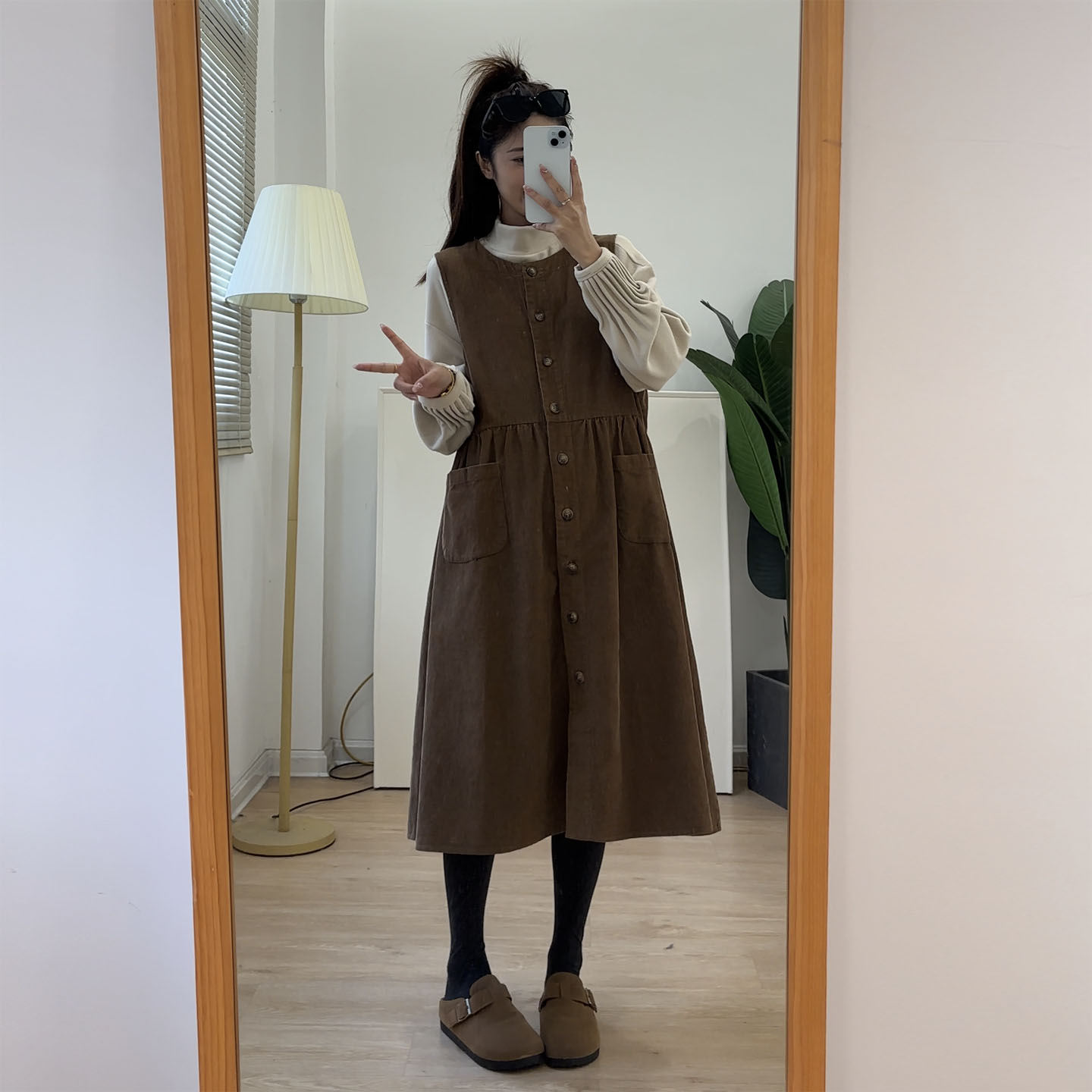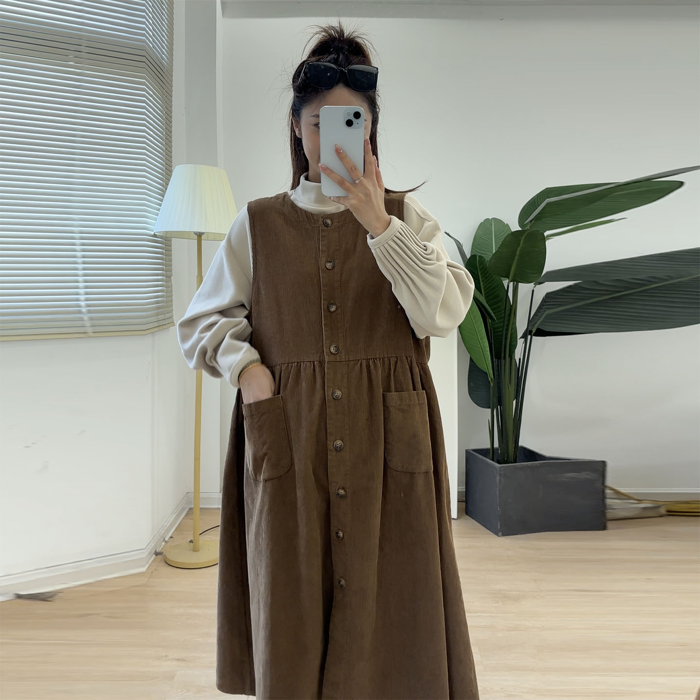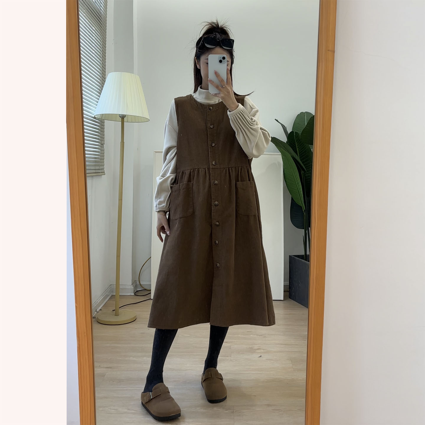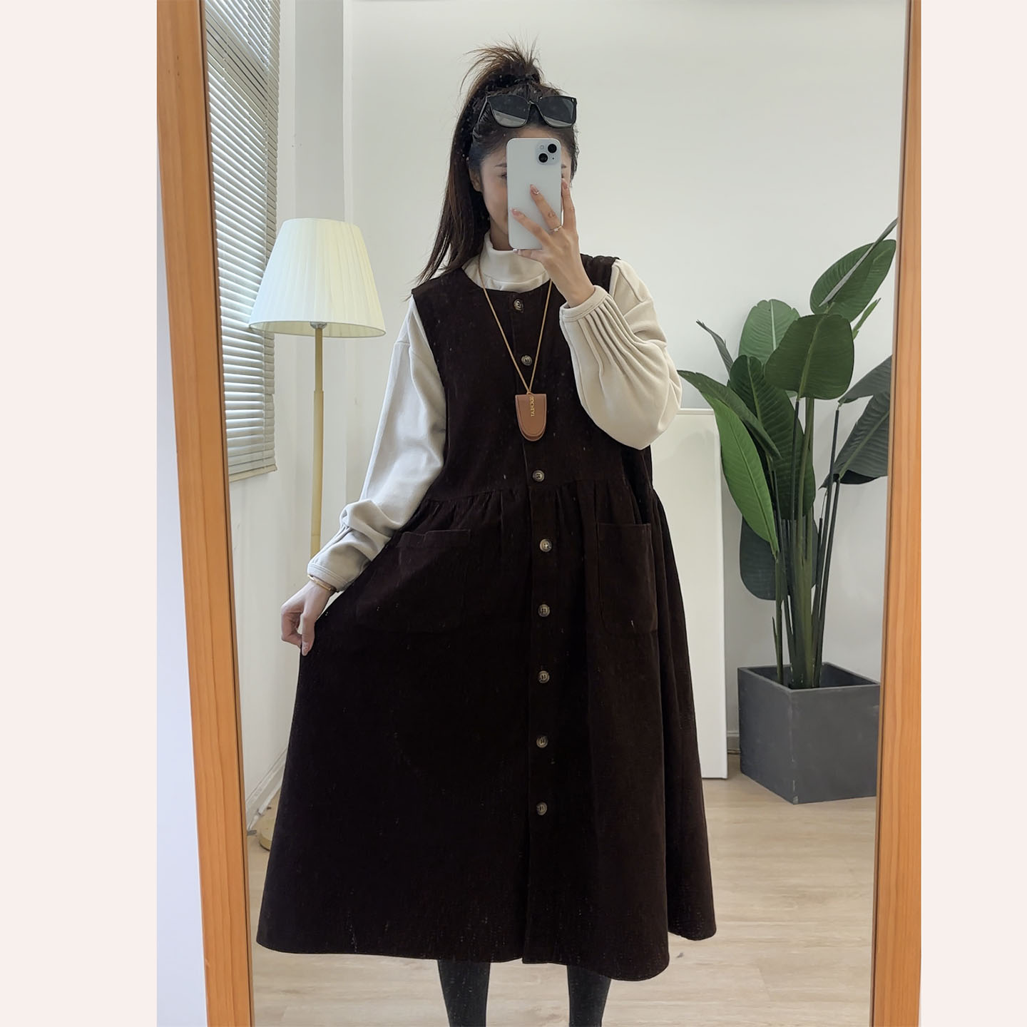 淘宝诺初孕妇装◆洋气复古灯芯绒连衣裙秋冬孕妇穿搭背心裙减龄背带裙