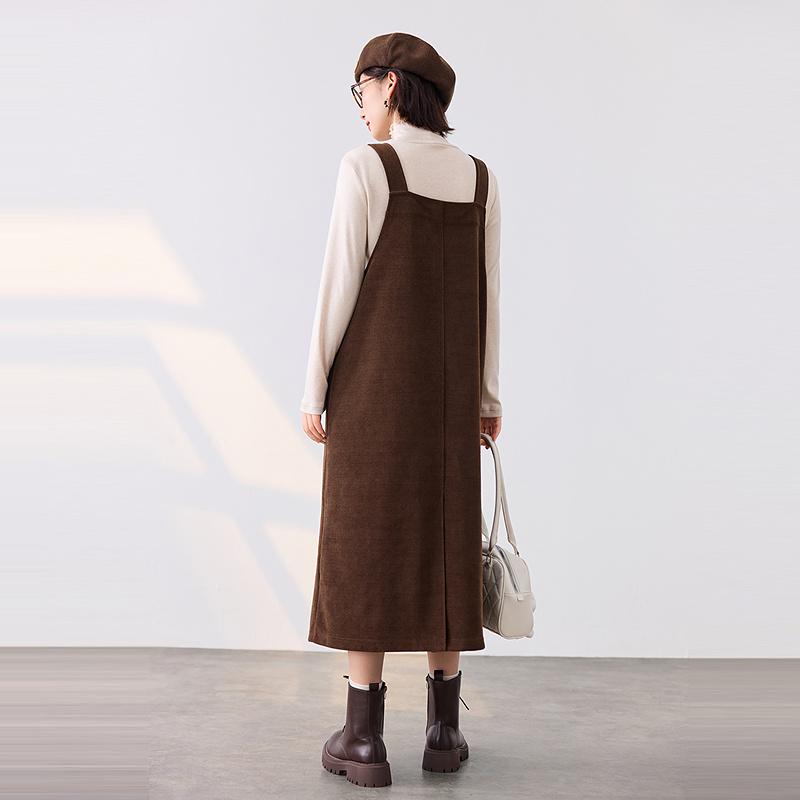 孕妇连衣裙套装2025新款韩版咖色灯芯绒背带裙打底衫两件套秋冬季