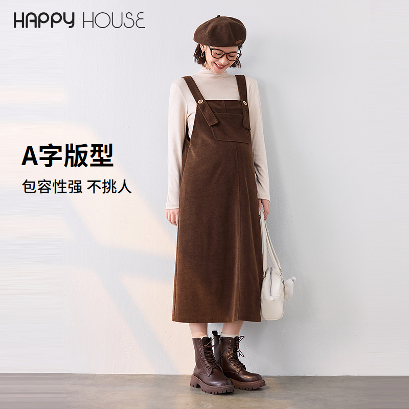 天猫快乐屋雪柳灯芯绒孕妇背心裙秋冬2025新款宽松连衣裙外穿背带裙秋