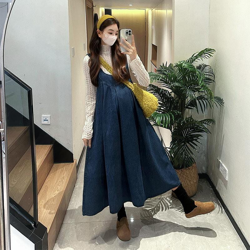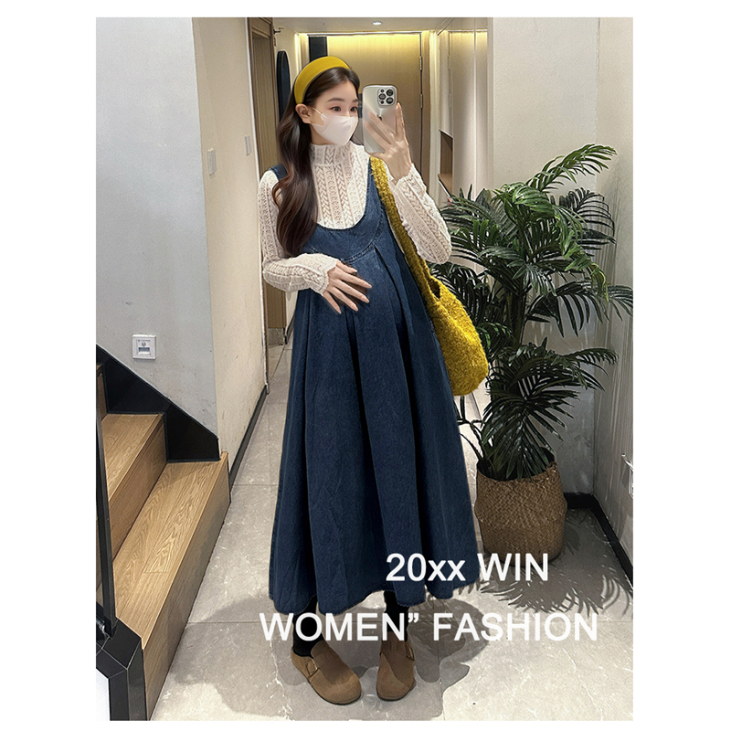 淘◆AMUM孕妇装◆韩系chic~复古牛仔背带裙秋冬碎花休闲连衣裙