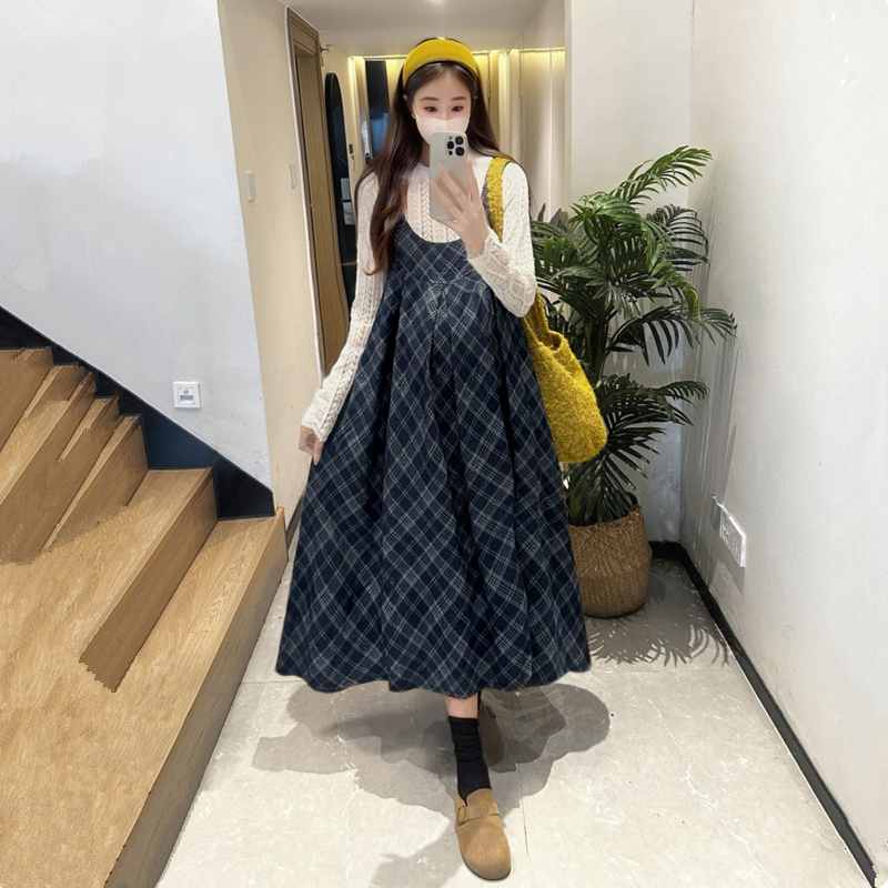 费雪孕妇秋装背带连衣裙2025新款小个子纯棉春秋裙子秋季两件套装
