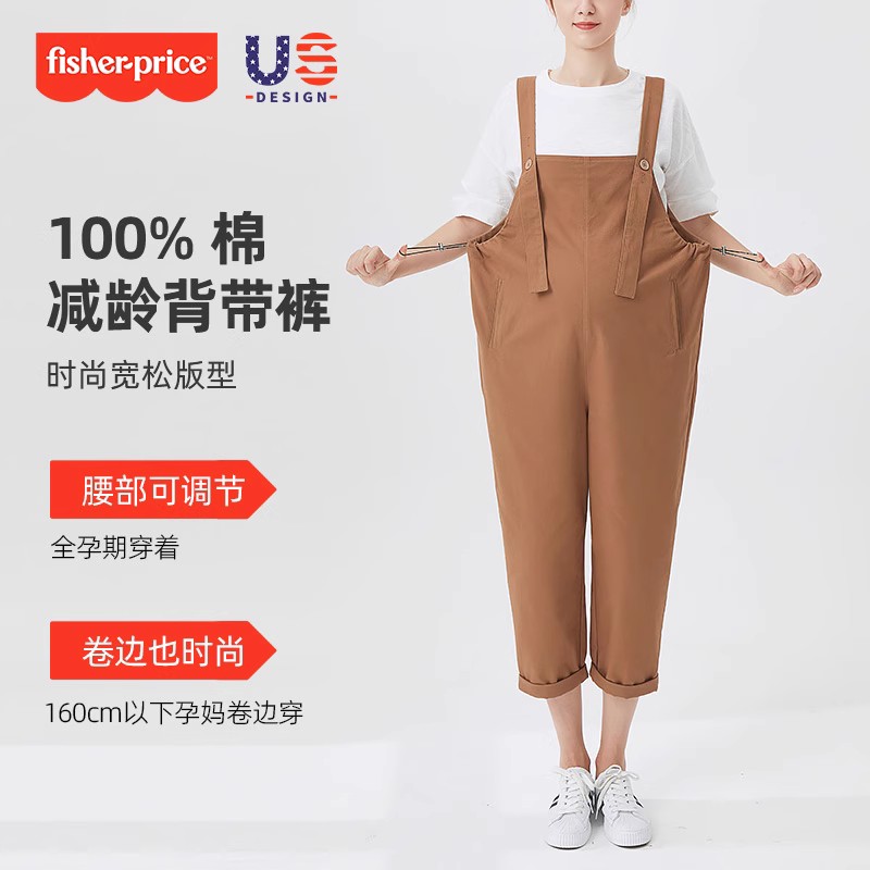 天孕妇背带裤秋装外穿2025新款秋季大码宽松休闲小个子九分女孕妇装