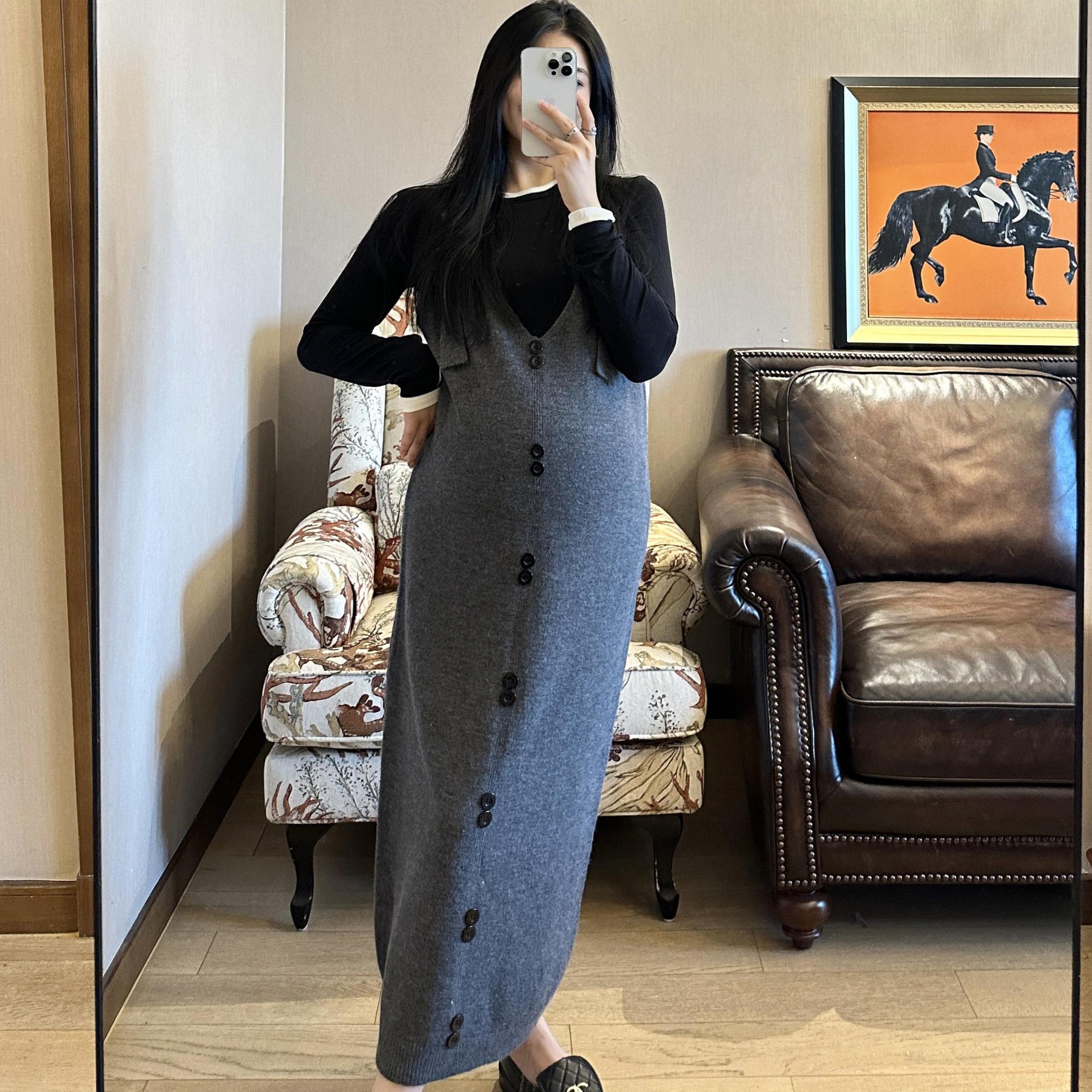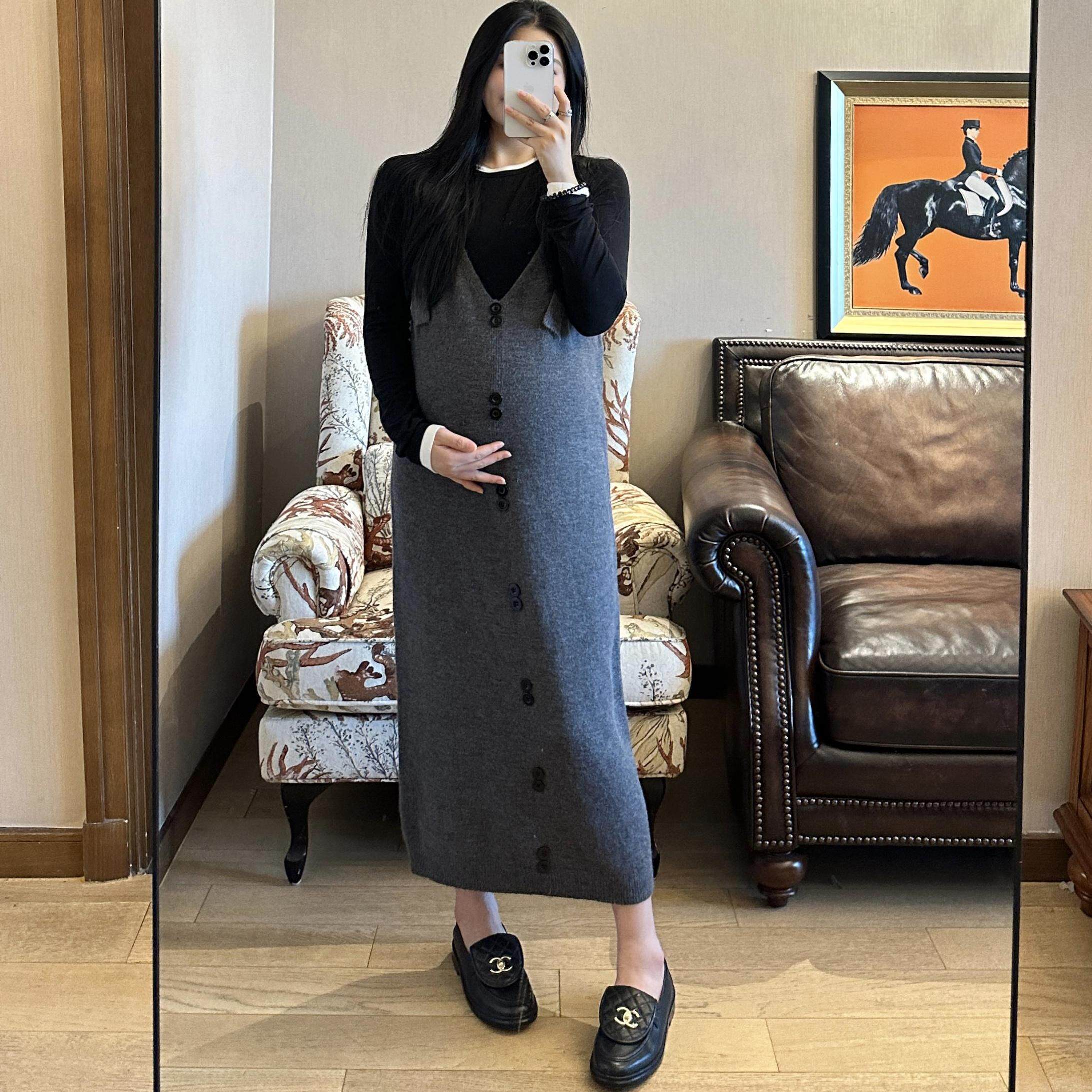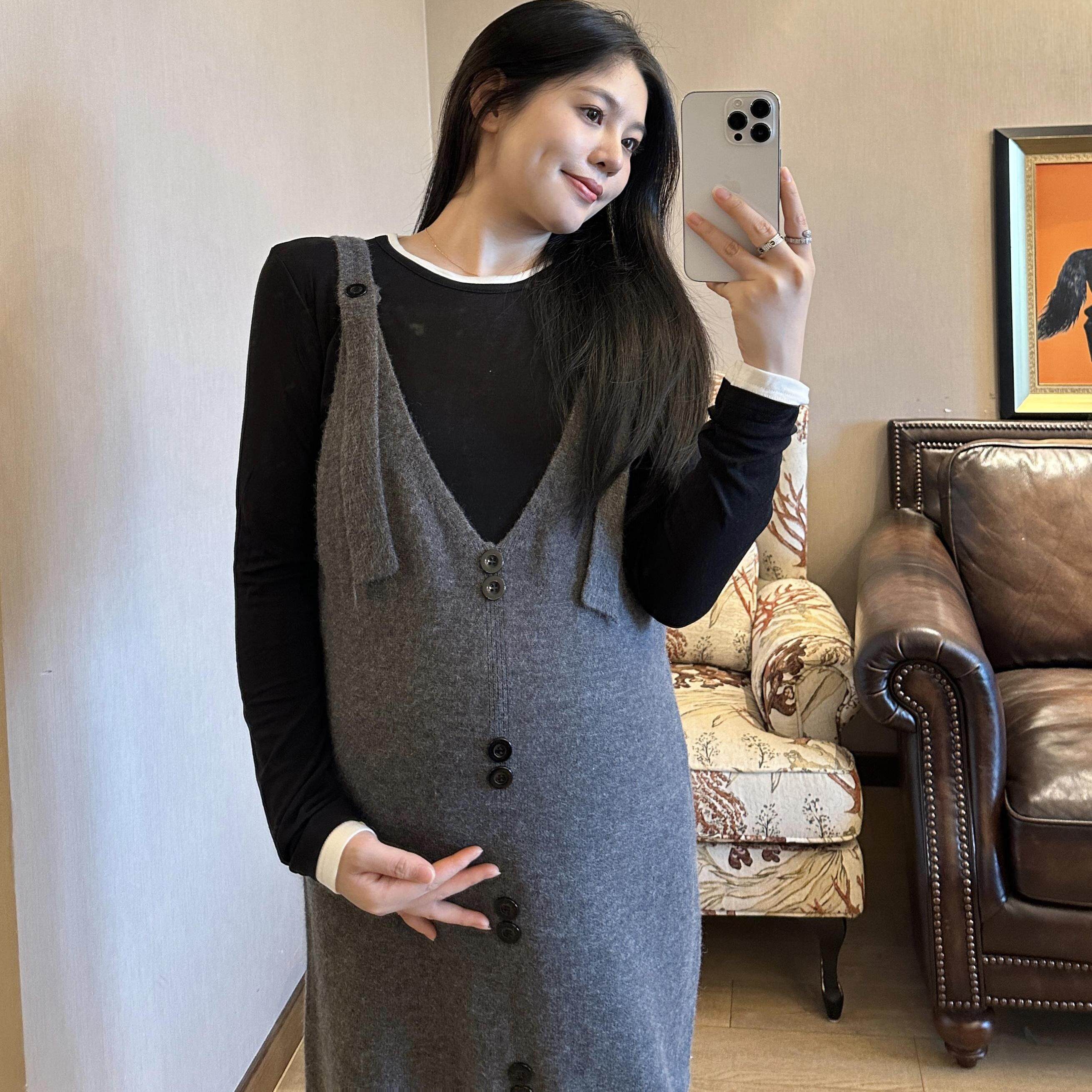 淘宝PEIPEI佩佩孕妇装高端背带裙秋冬连衣裙2024新款背心裙宽松长款