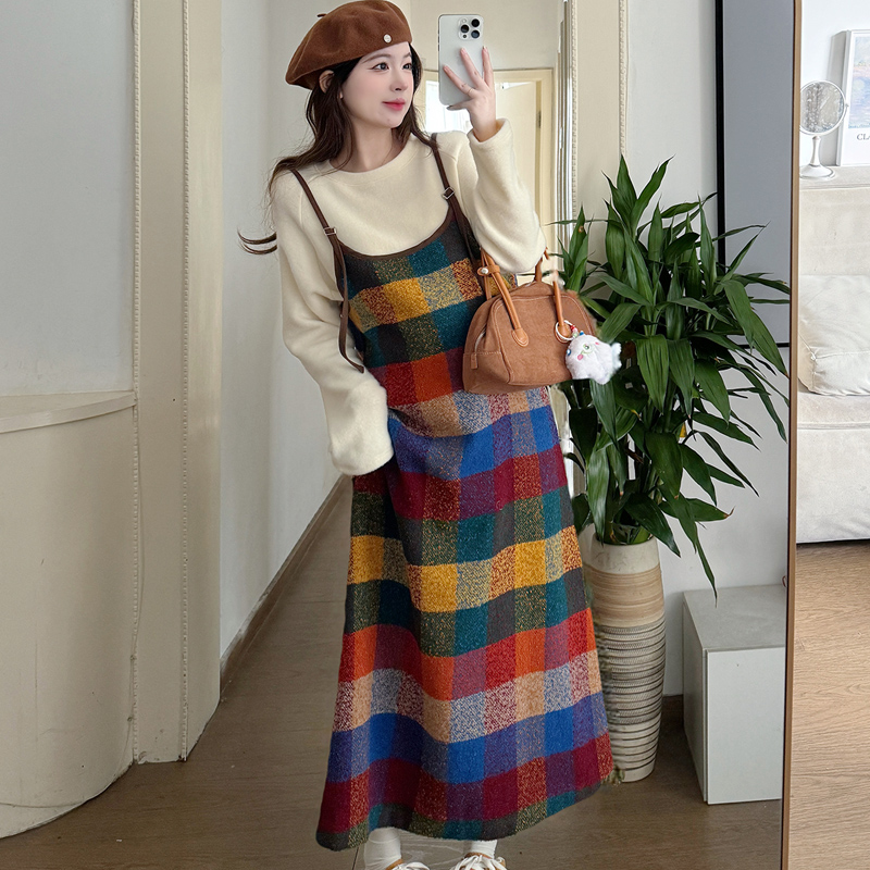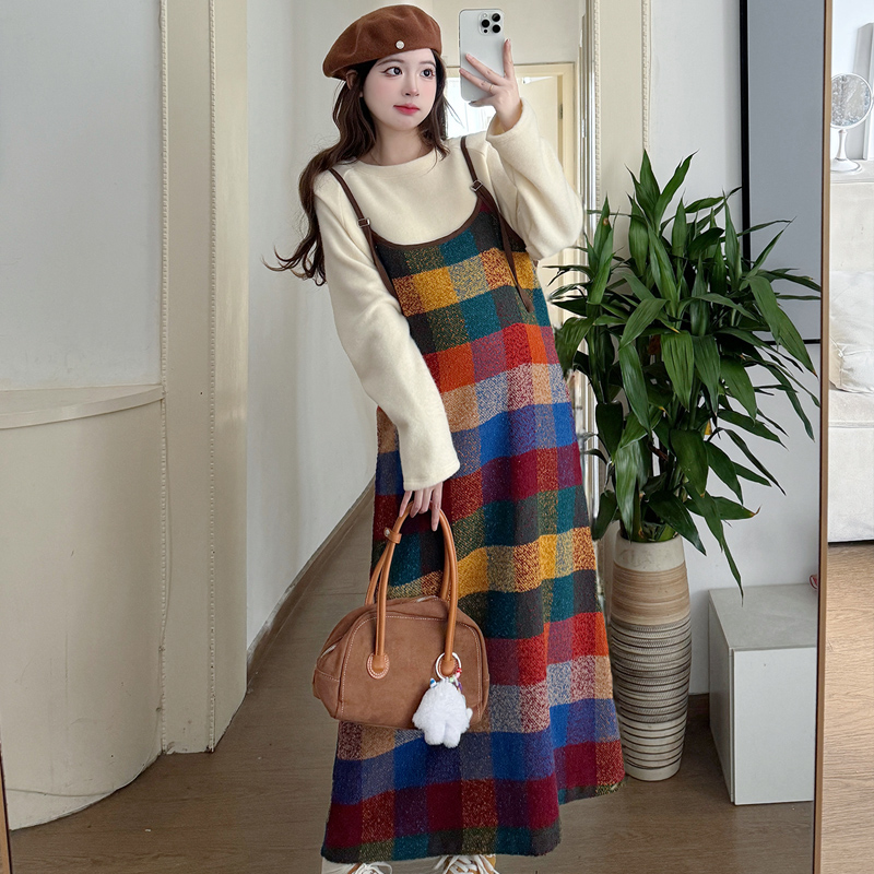 孕妇连衣裙两件套装时尚宽松显瘦中长款洋气背带裙2025新款春秋冬