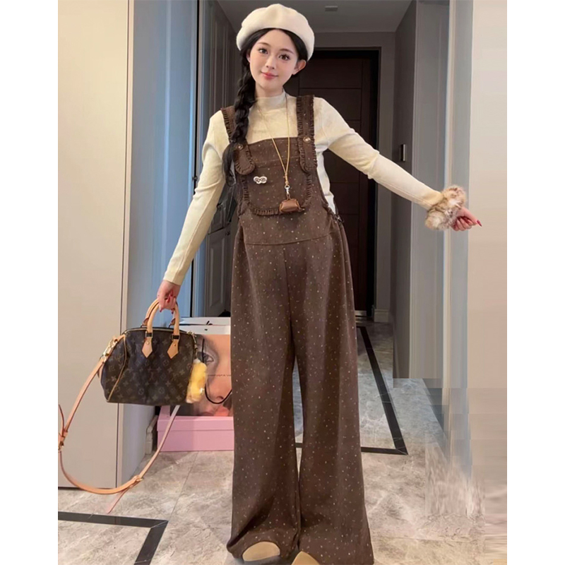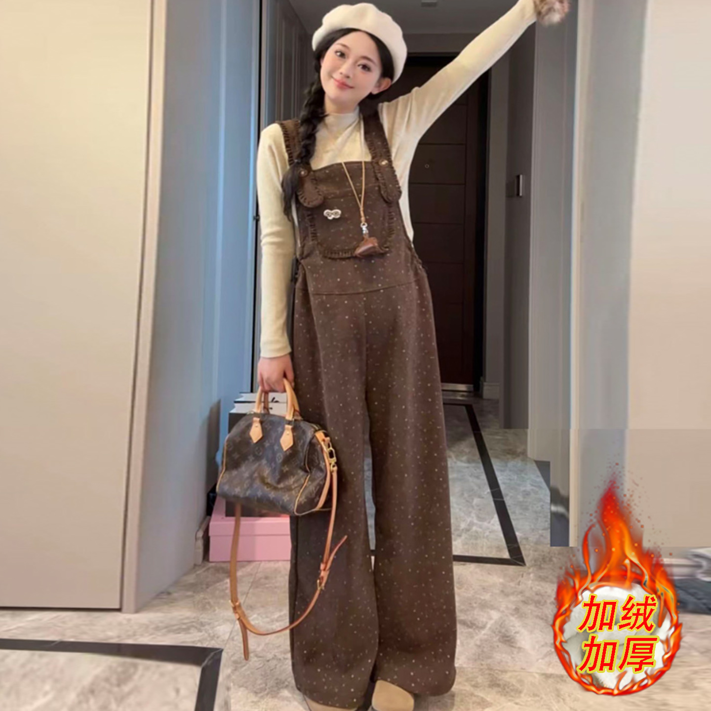 天猫孕妇卡其色套装春秋冬2025新款孕妈遮肚加绒加厚温柔背带裤两件套
