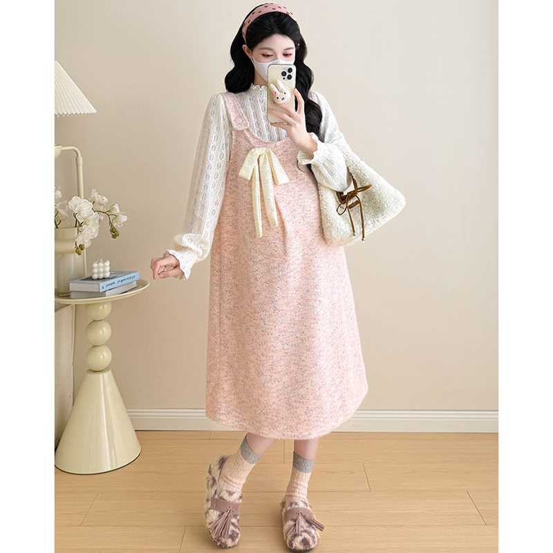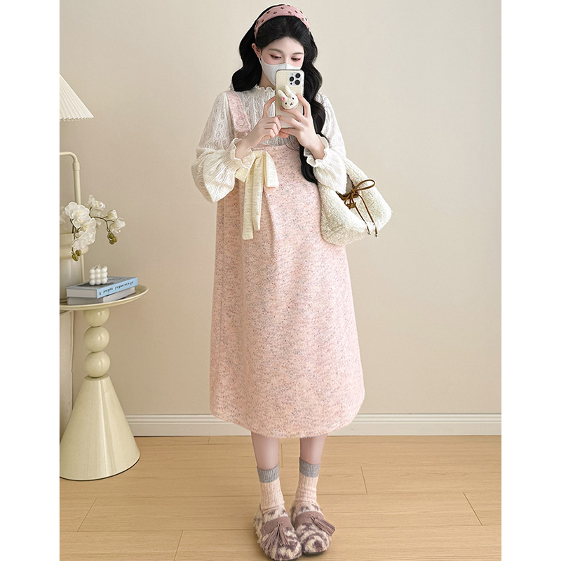 孕妇连衣裙套装秋冬2025新款灰色高级感毛呢背带裙打底衫两件套女