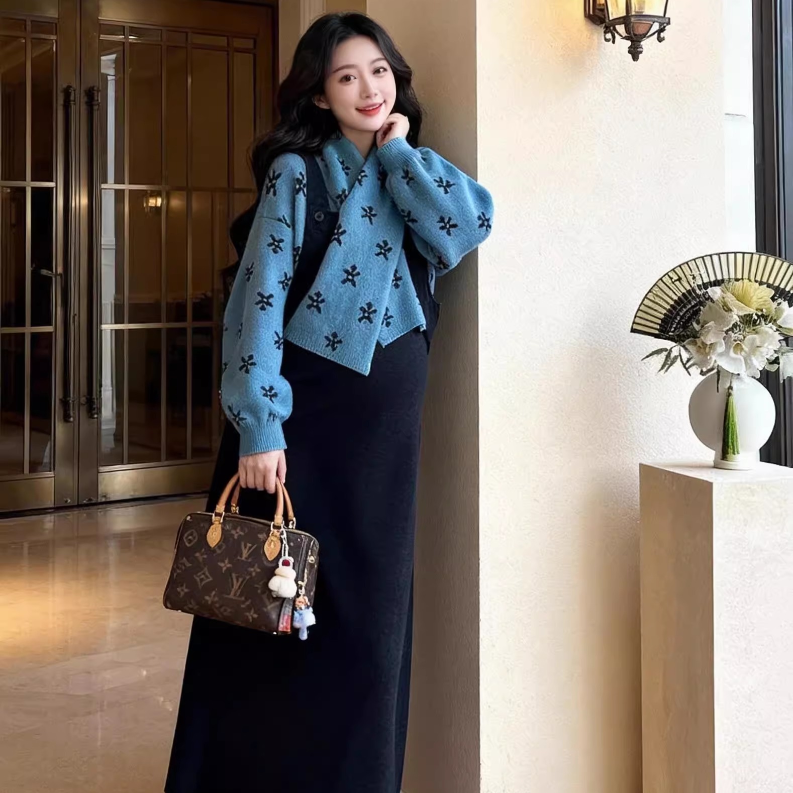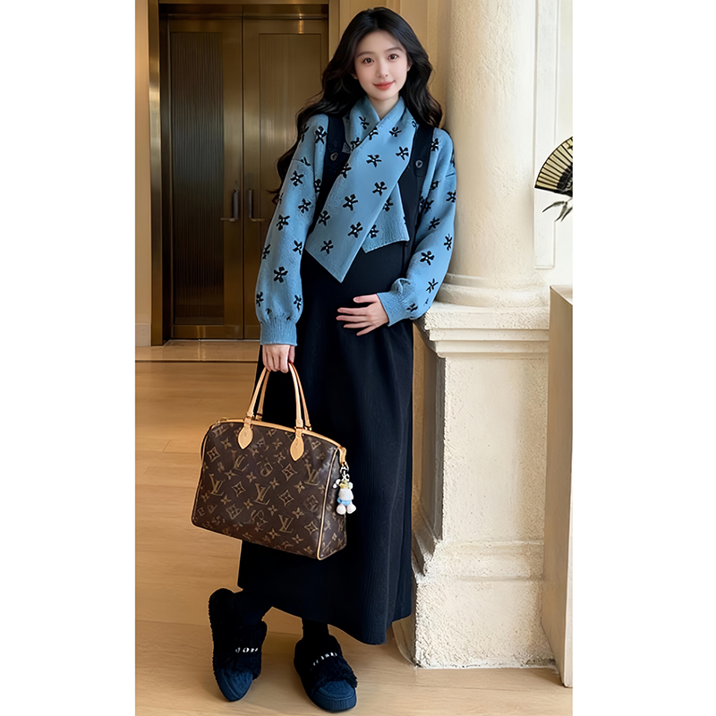 孕妇装秋装2025新款连衣裙套装孕妈高级感穿搭秋冬季背带裙两件套