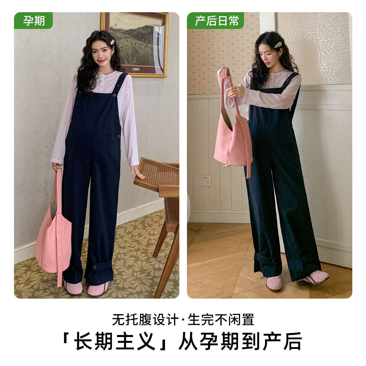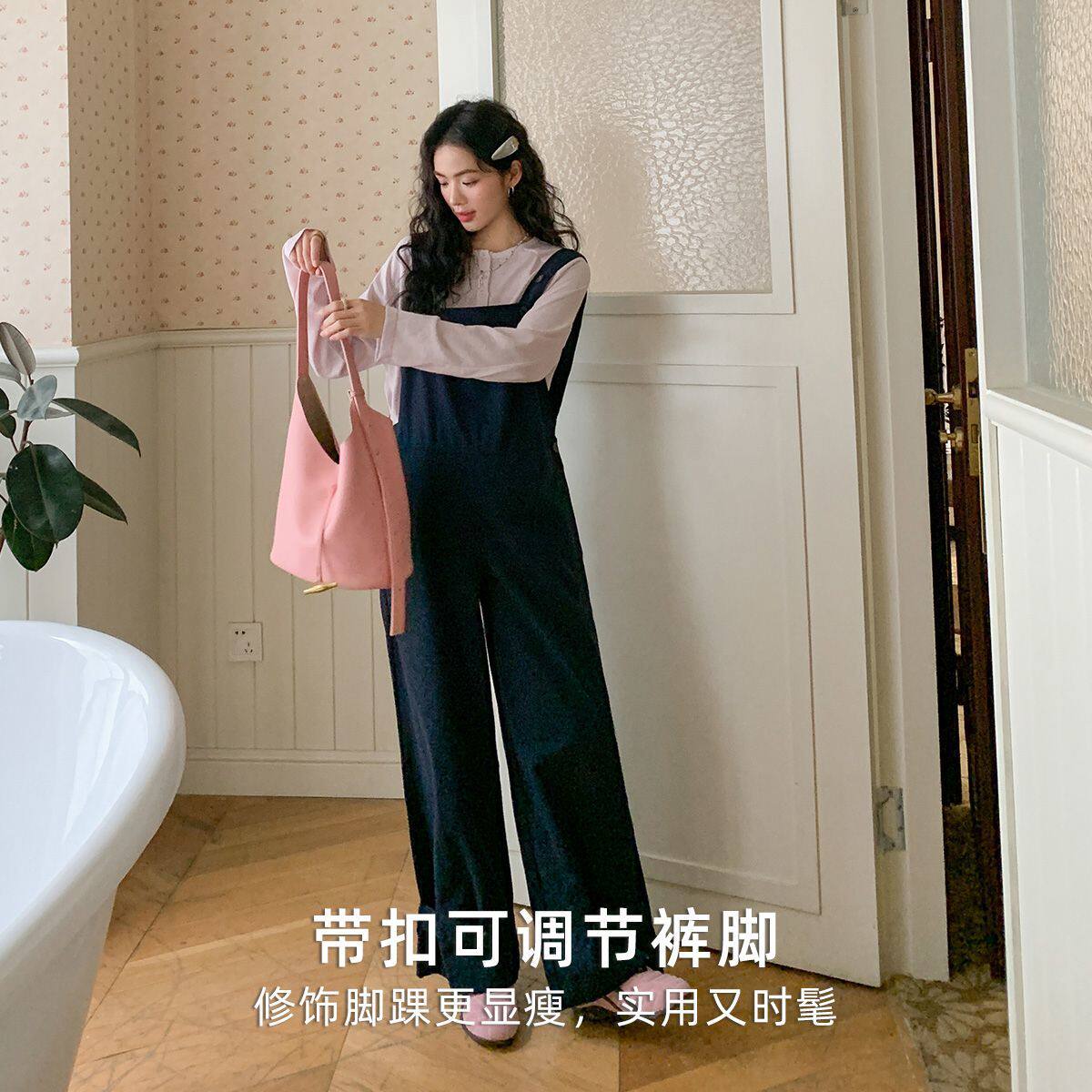 孕妇背带长裤牛仔阔腿女春装秋新款宽松直筒连体裤洋气减龄小个子