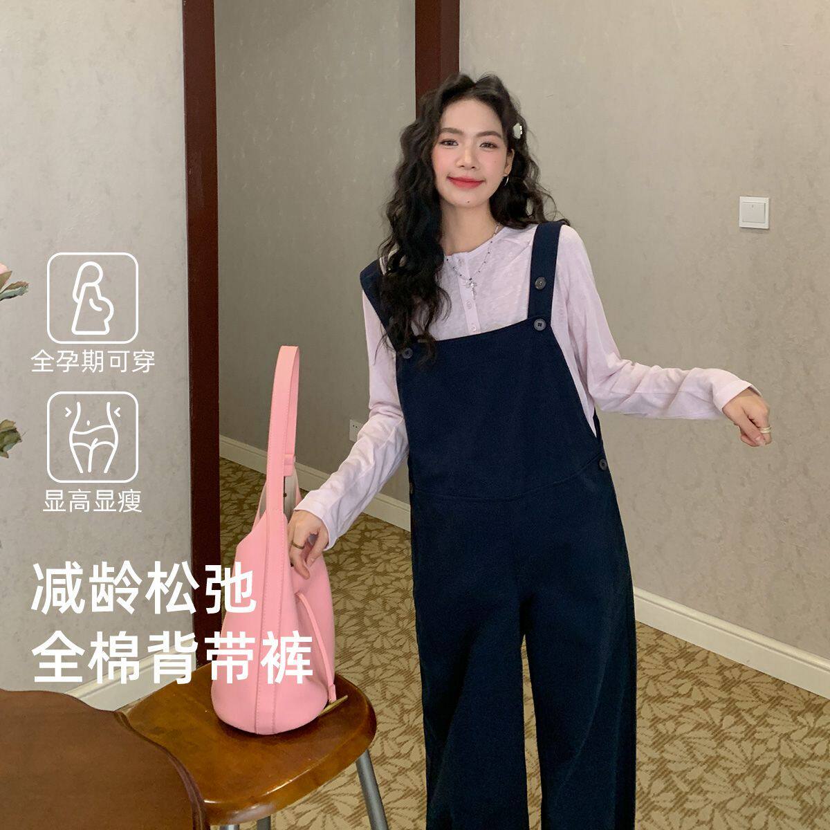 孕妇背带裤春季外穿2026新款纯棉孕妇宽松阔腿裤大码孕期直筒长裤