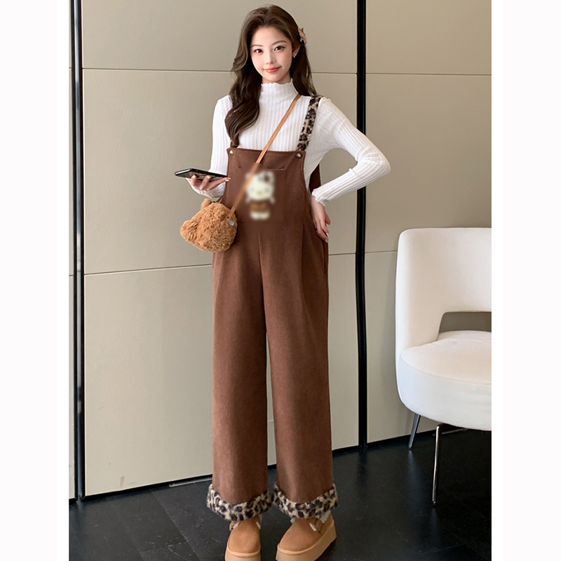 天快乐屋孕妇裤子冬装2025新款时尚潮妈宽松大码孕妇加绒直筒背带裤