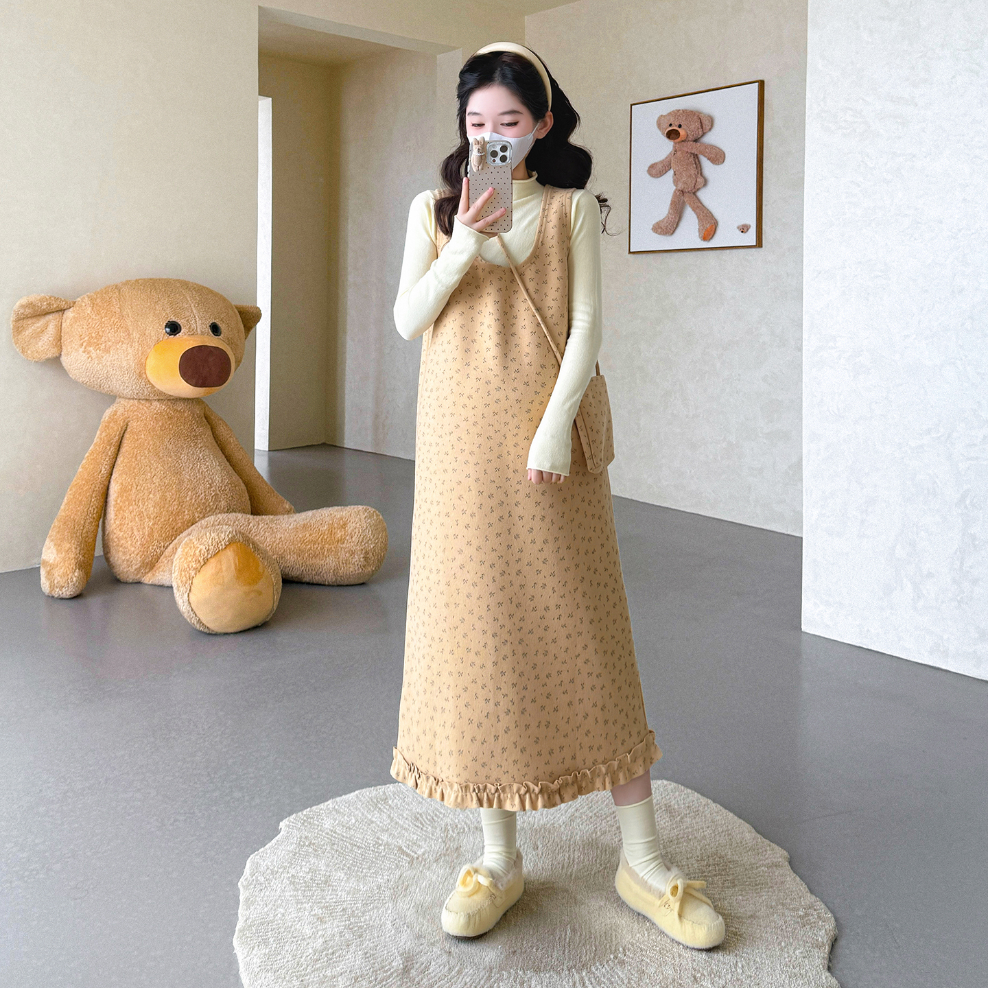 淘孕妇连衣裙黄色套装秋冬2025新款时尚甜美不显怀宽松背带裙两件套