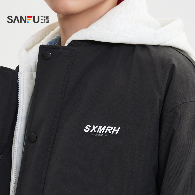 淘宝三福2025冬季男士英文点缀假两件短棉衣 连帽棒球服外套506193