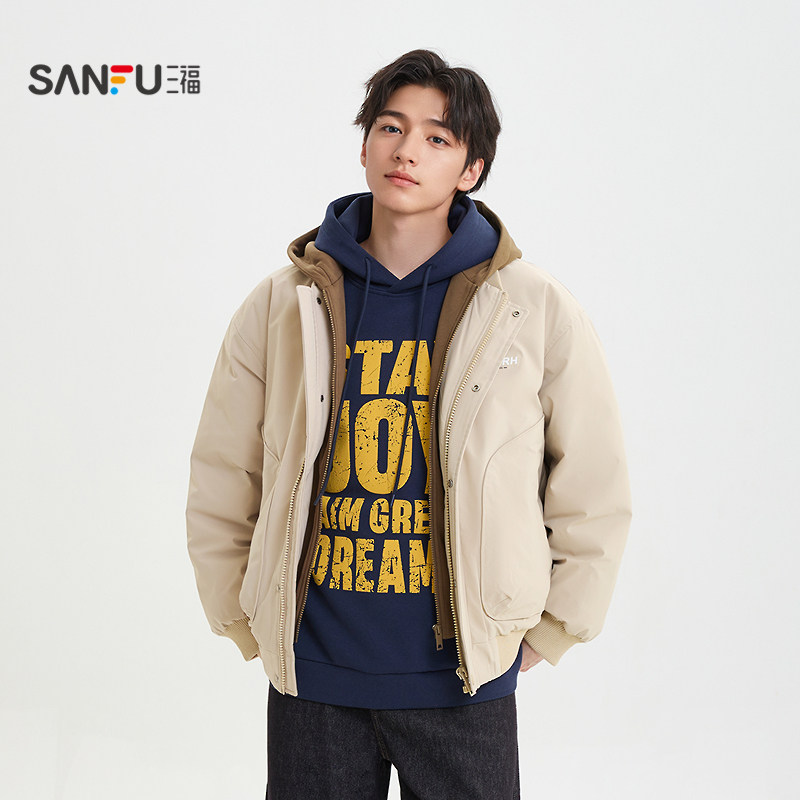 天美拉德棕色立领羽绒棉服男冬季加厚保暖工装外套高级感短款棒球服