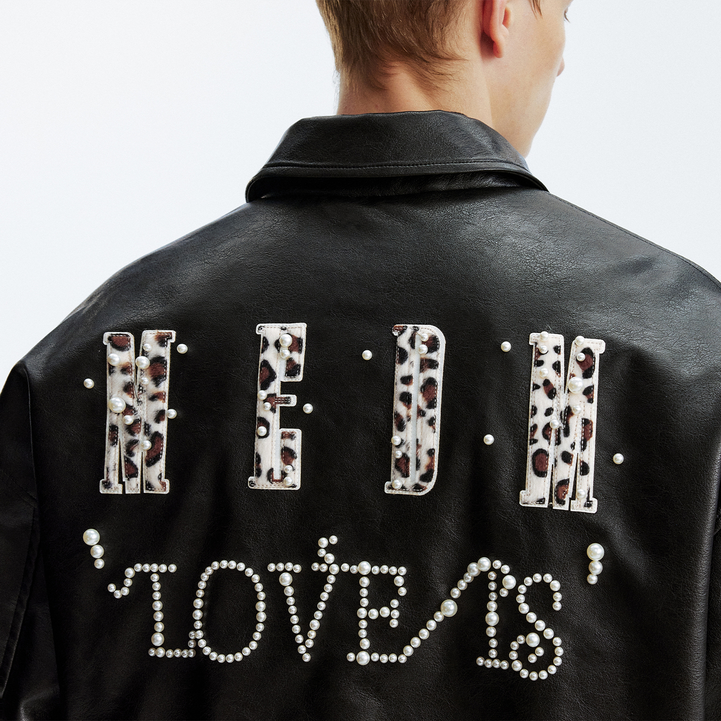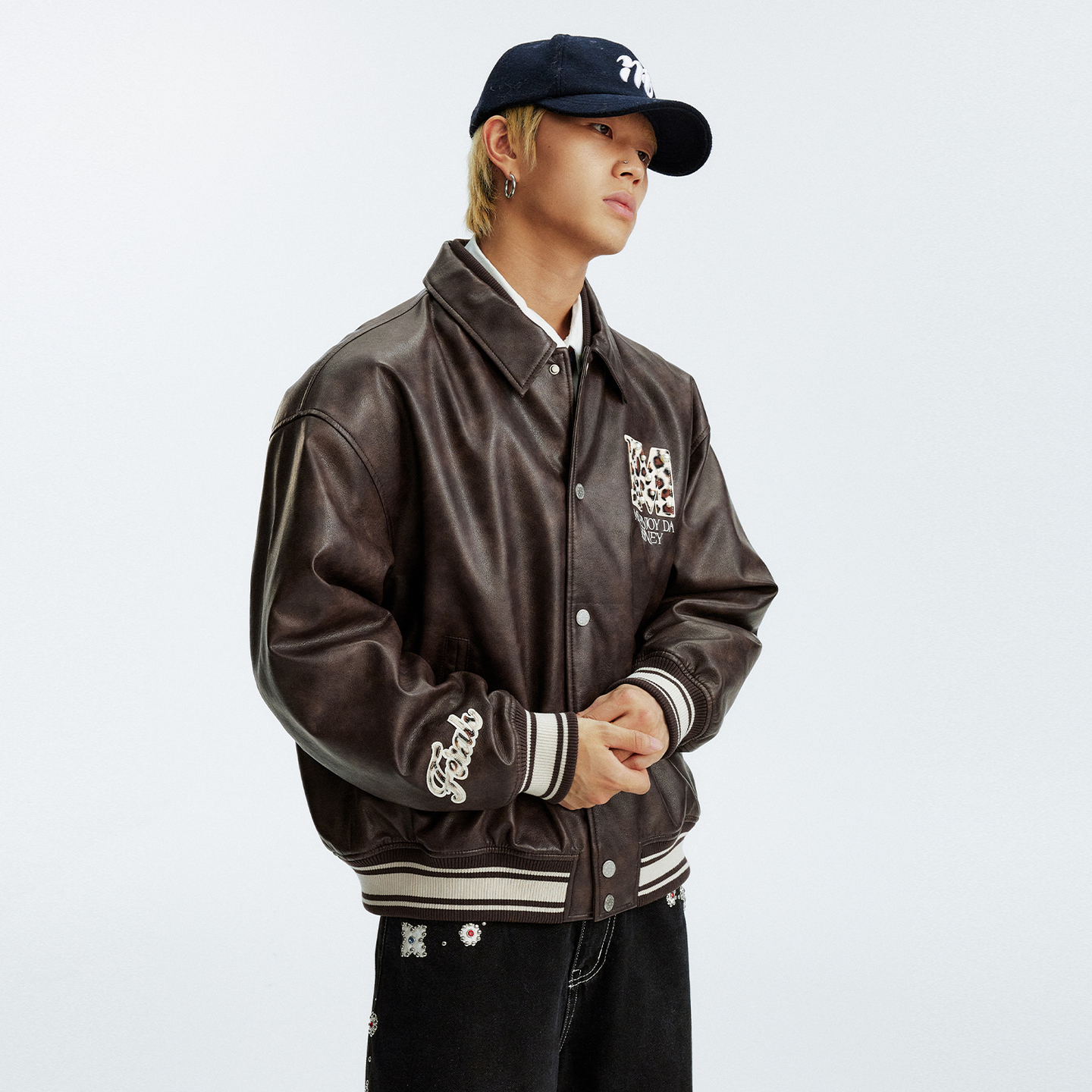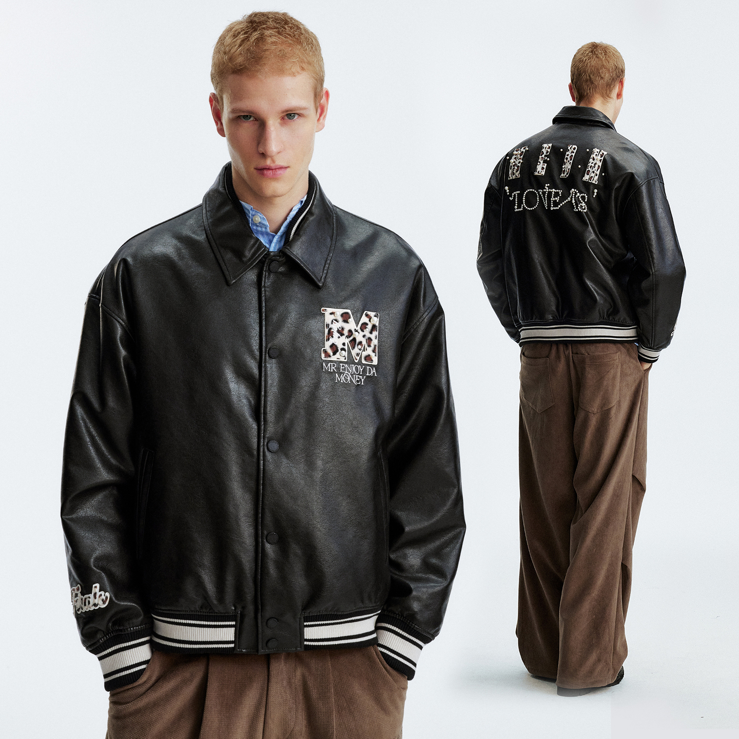 淘宝MEDM 双层皮双领pu休闲棒球服皮衣美式街头男女保暖夹棉翻领外套