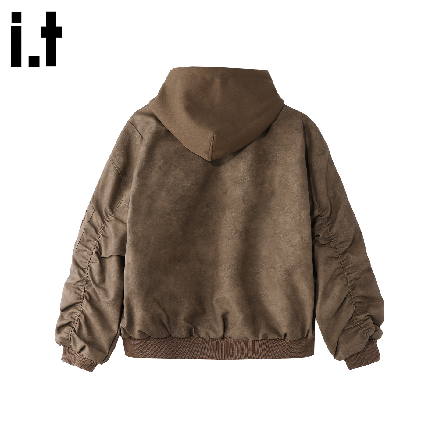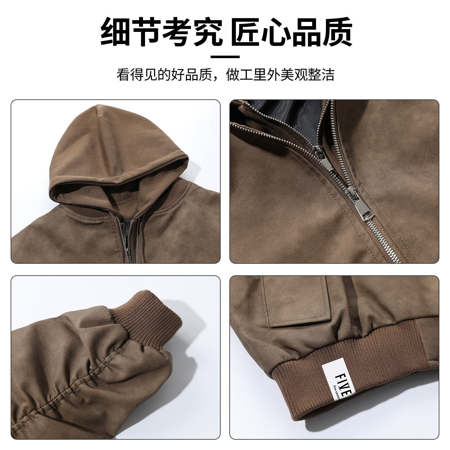 天春秋PU皮连帽假两件棒球服外套男美式复古bomber宽松飞行夹克上衣