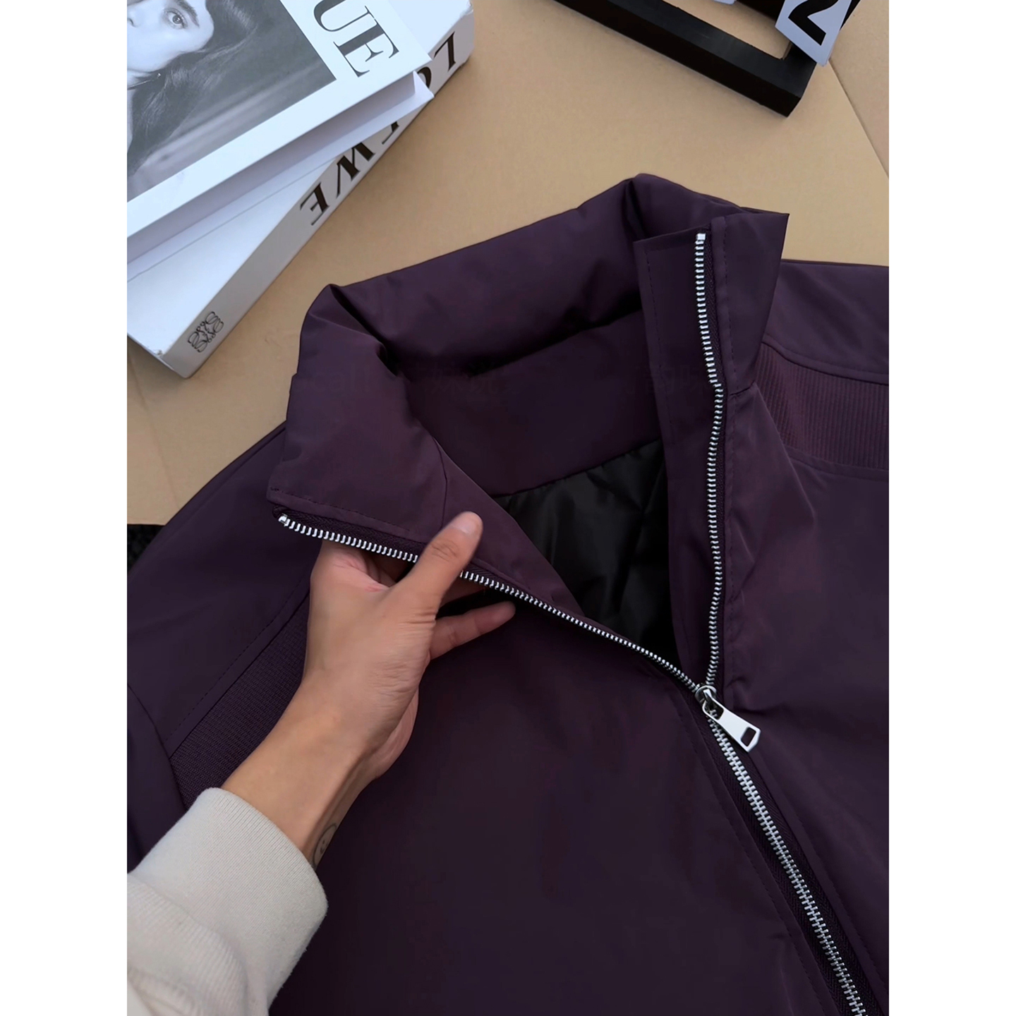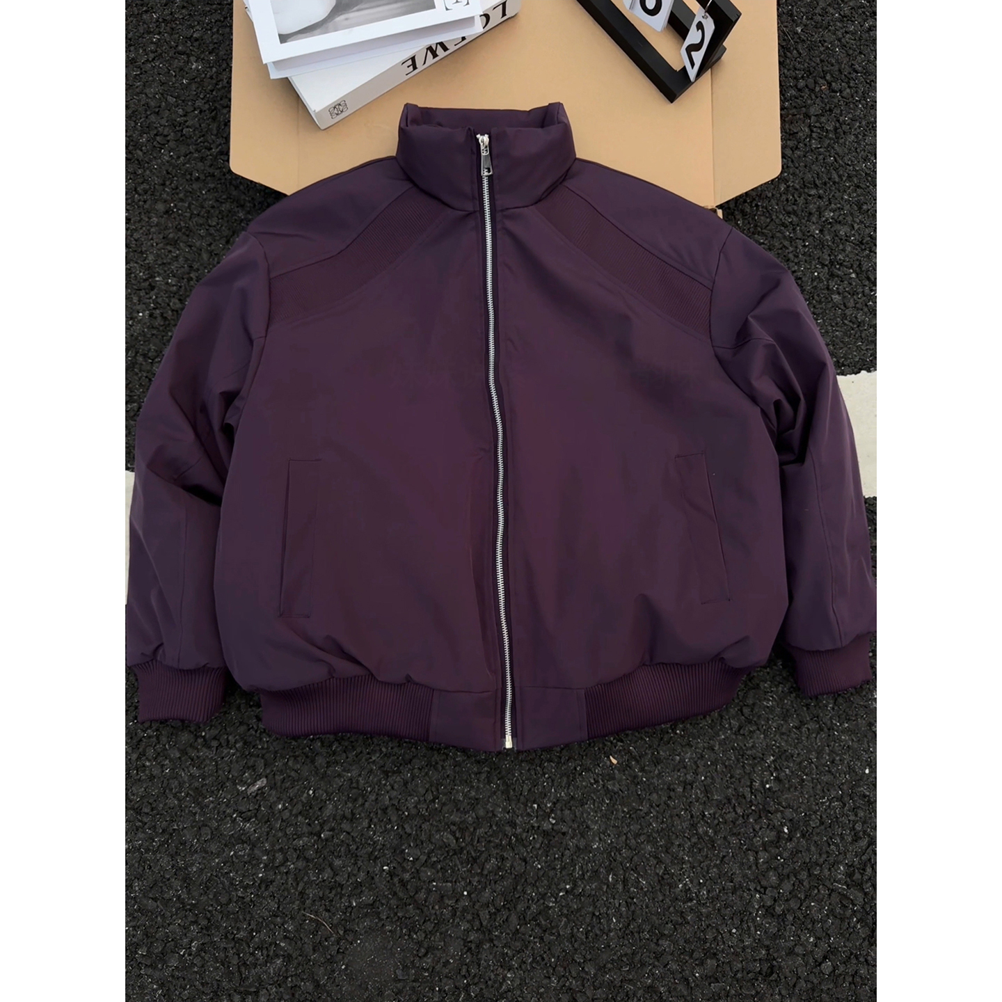 天猫乌梅紫色飞行夹克棉服男冬季美式解构立领棒球服cleanfit棉衣外套