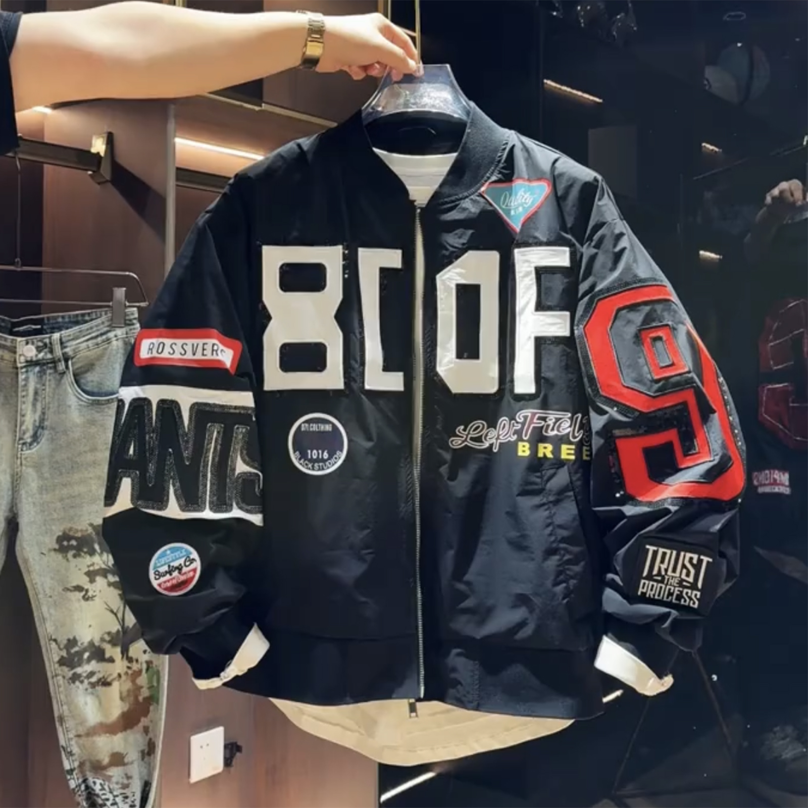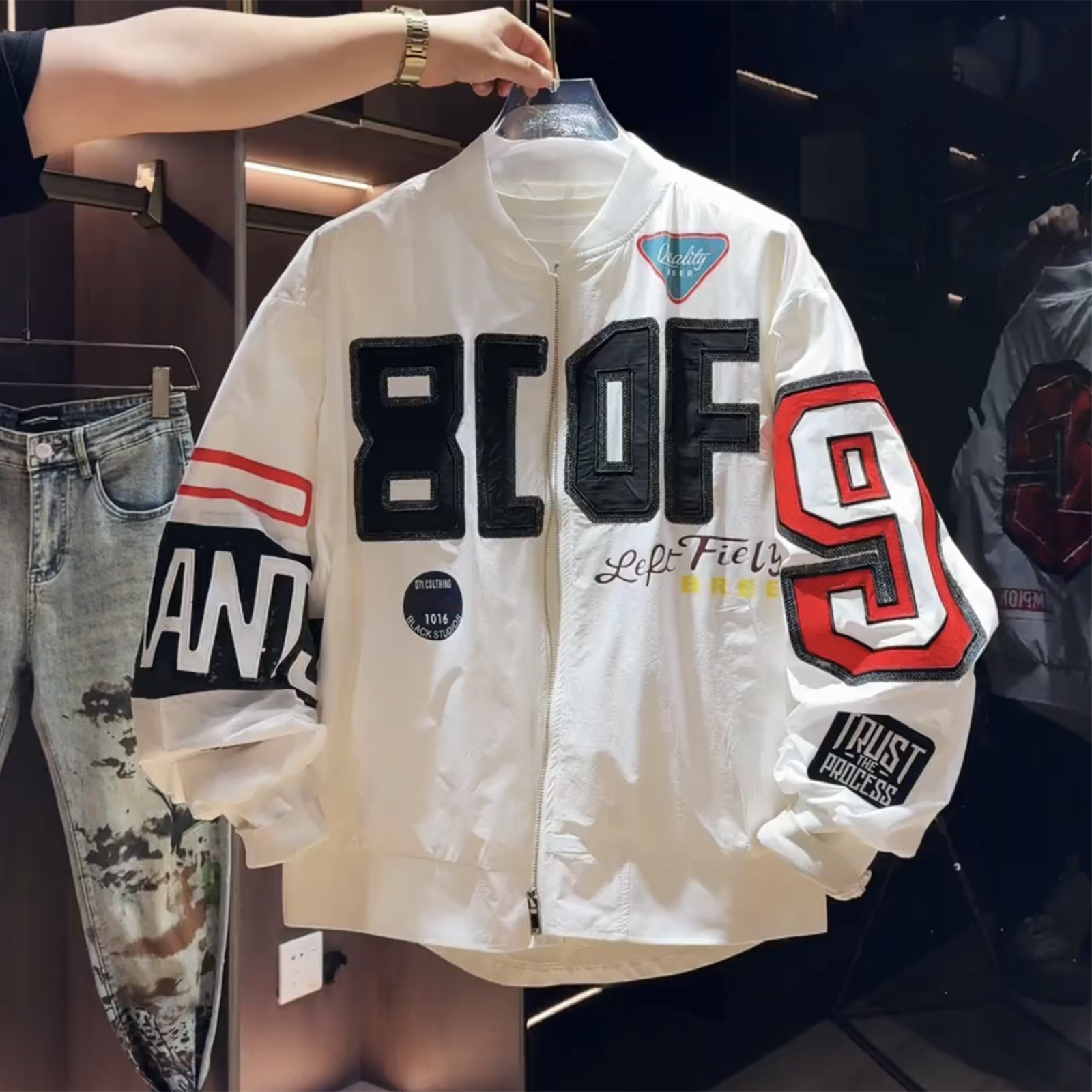 ALLIN 美式高街棒球服男秋冬潮牌骷髅头字母印花休闲百搭夹克外套