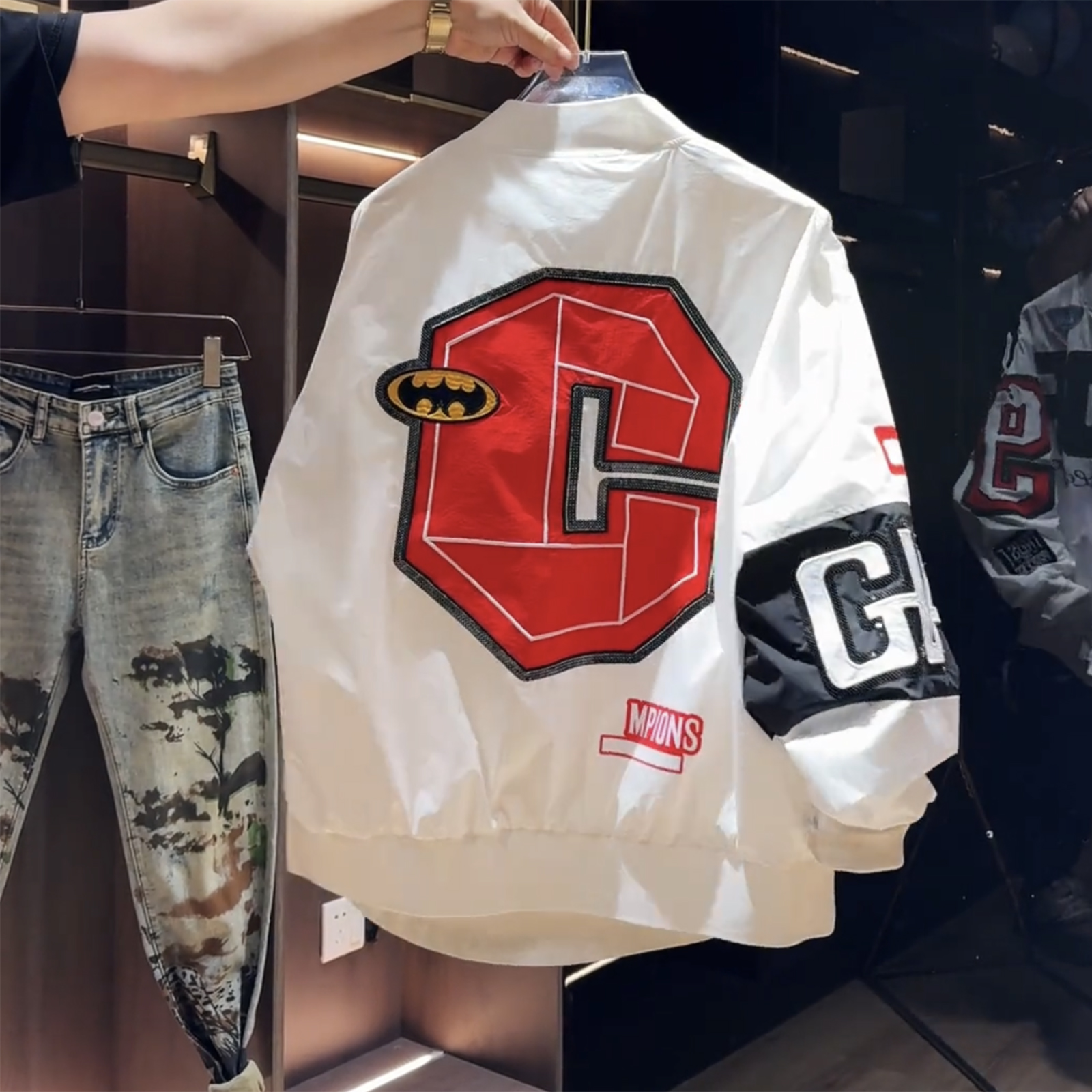 天ALLIN 美式高街棒球服男秋冬潮牌骷髅头字母印花休闲百搭夹克外套
