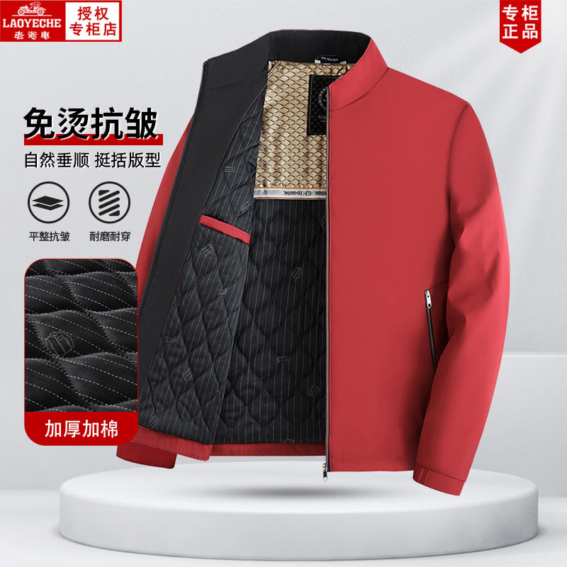 天【马年新年款】杰克琼斯男装红色宽松短款飞行员夹克棒球服外套