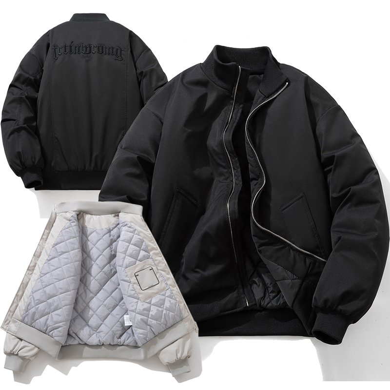 美式休闲冬季男夹棉加厚防风防泼水棒球领飞行绗棉夹克棉衣棉服潮
