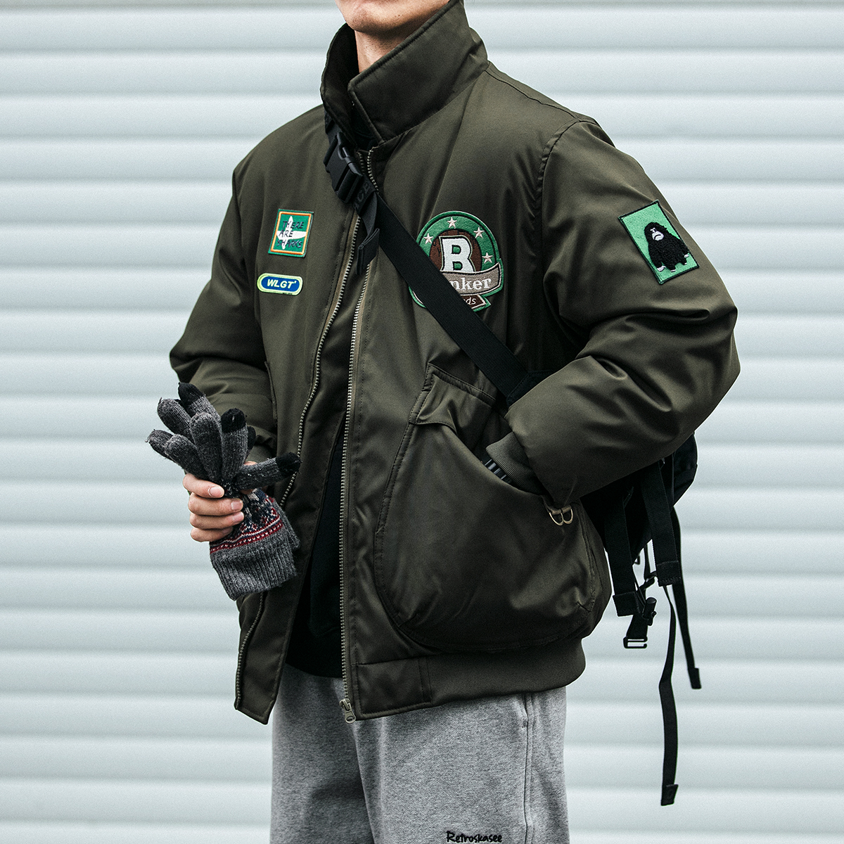 VIP潮牌秋冬季飞行员夹克男加厚保暖棉衣复古棒球服刺绣棉服外套