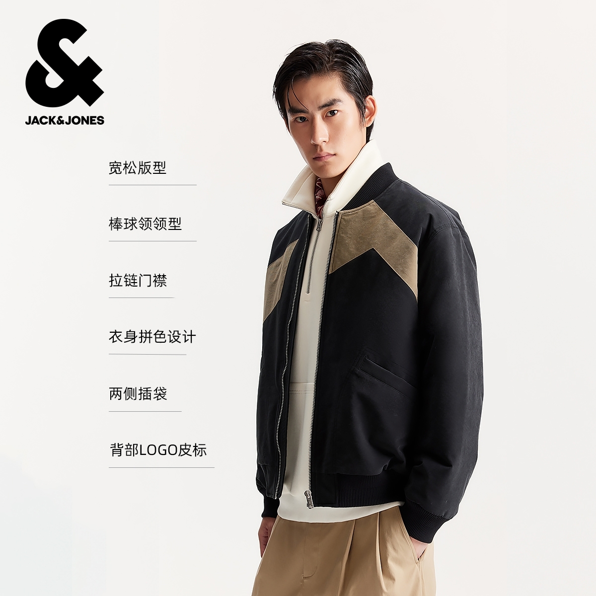 天猫杰克琼斯男装冬季新款时尚拼色休闲保暖宽松棒球服棉衣棉服外套