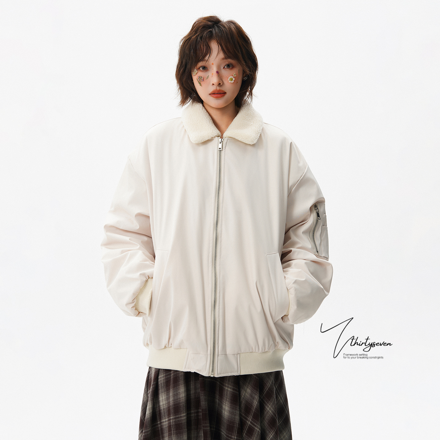 淘NEVERNEED宽松棒球领棉服男女秋冬季美式高街飞行员短款棉服外套