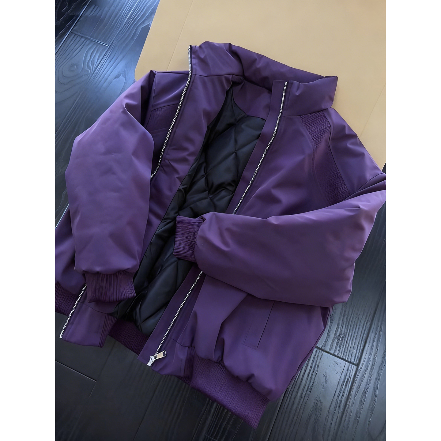 天猫紫色飞行夹克棉服男款冬季中性风加厚保暖棉衣美式解构立领棒球服