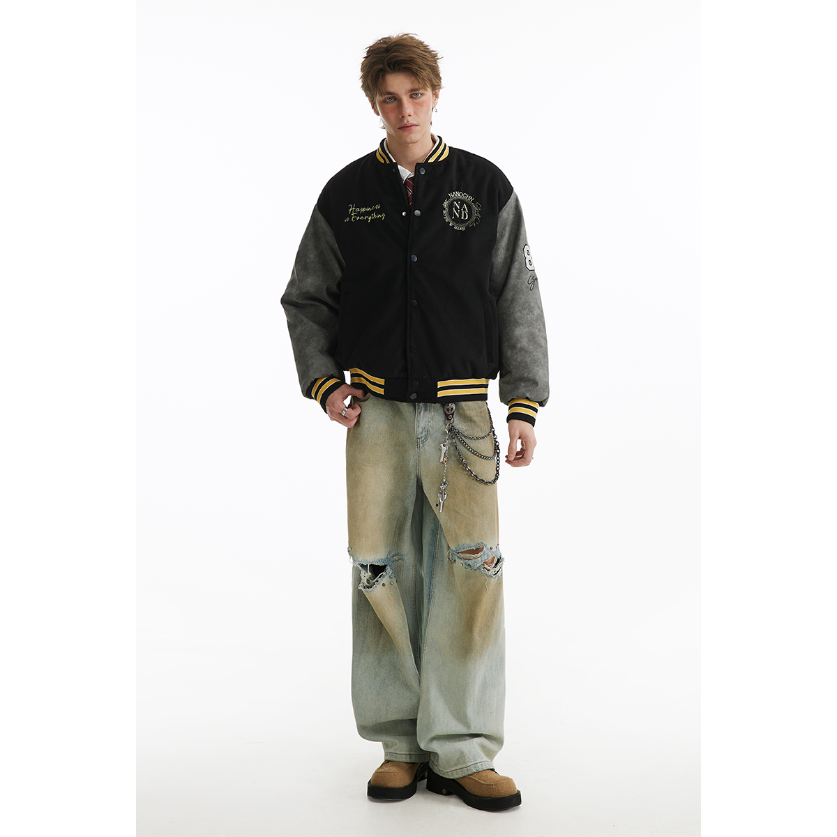 淘宝男道美式高街刺绣字母拼接撞色棒球棉服男女秋冬新款宽松立领棉衣