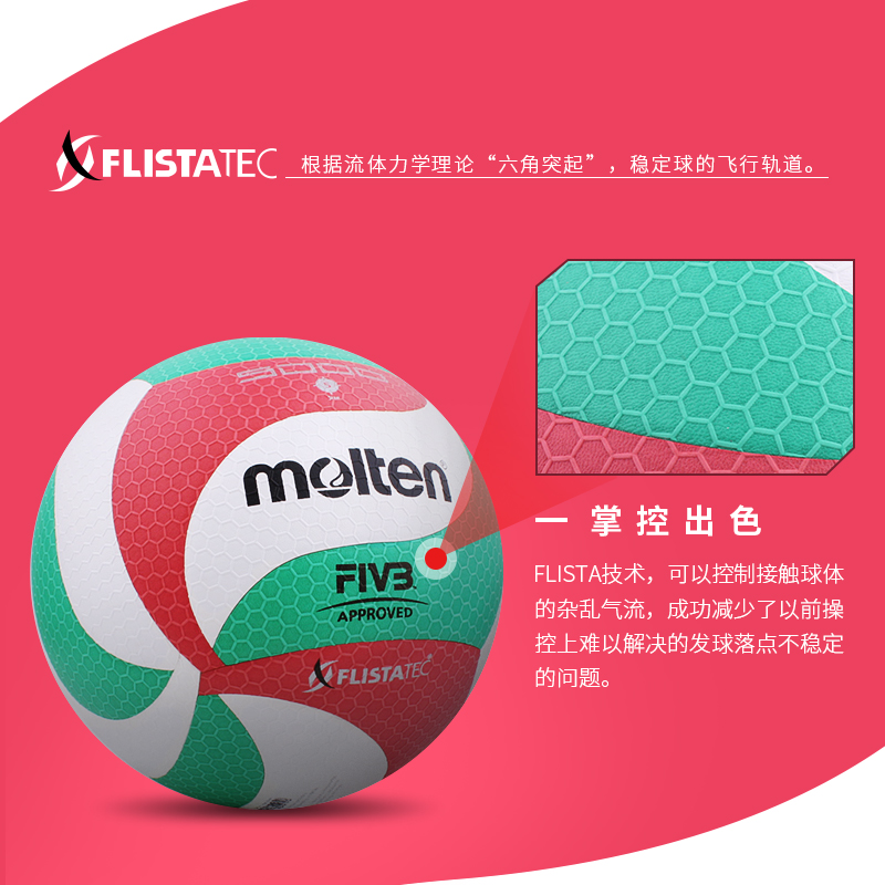 天molten摩腾直营V5M5000柔软排球FIVB认证5号PU贴皮比赛训练排球