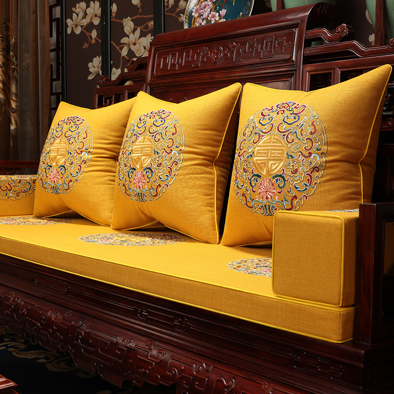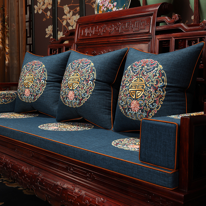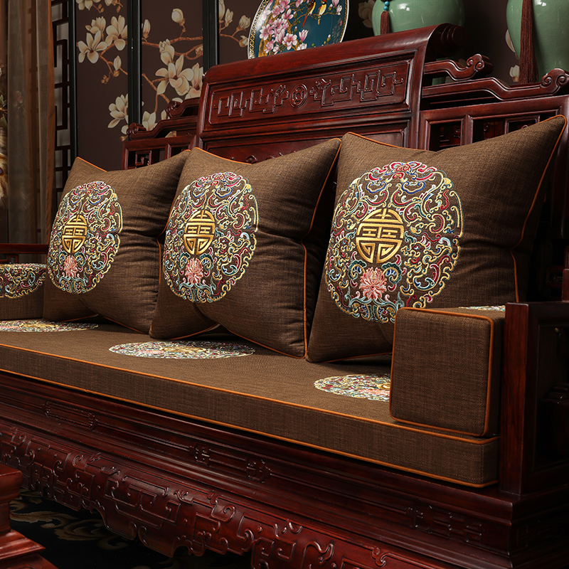 淘宝中式红木沙发垫实木家具坐垫带靠背罗汉床加厚座垫定制套防滑亚麻