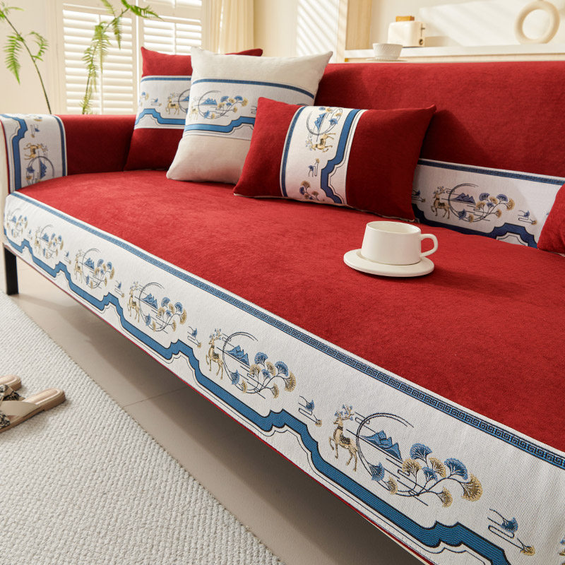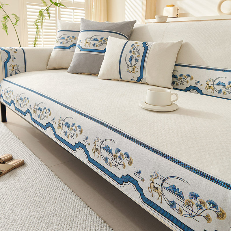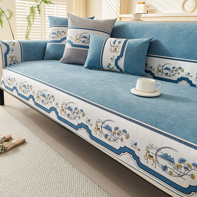 天猫新款雪尼尔沙发垫防滑新中式直排坐垫子靠背巾套简约现代四季通用