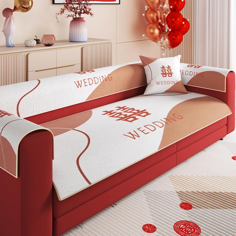 淘宝结婚喜庆红色沙发垫直排沙发盖布巾套罩2023新款四季通用防滑坐垫