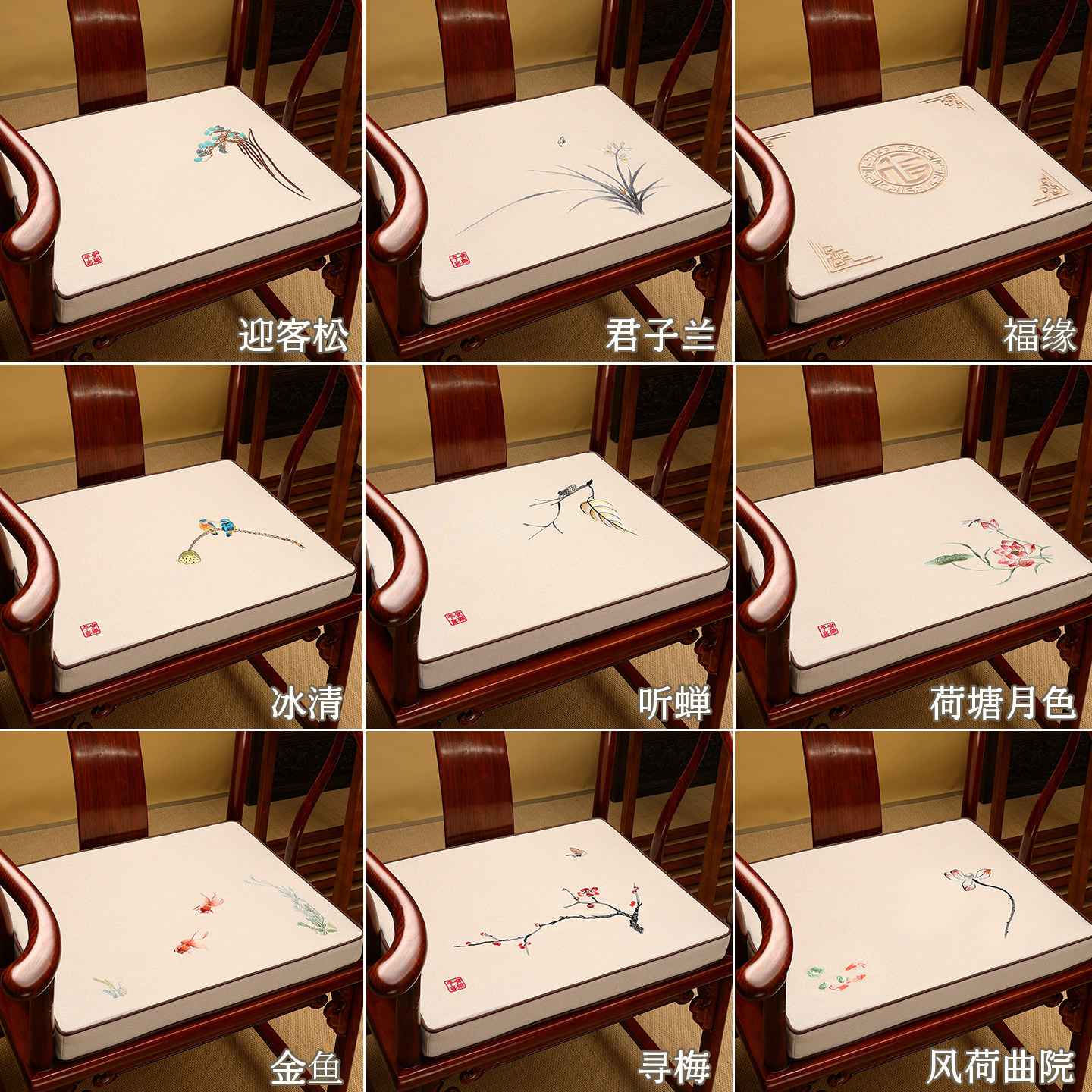 天猫新款乳胶坐垫定做中式实木椅子垫加厚茶椅餐椅垫圈椅屁垫官帽椅垫